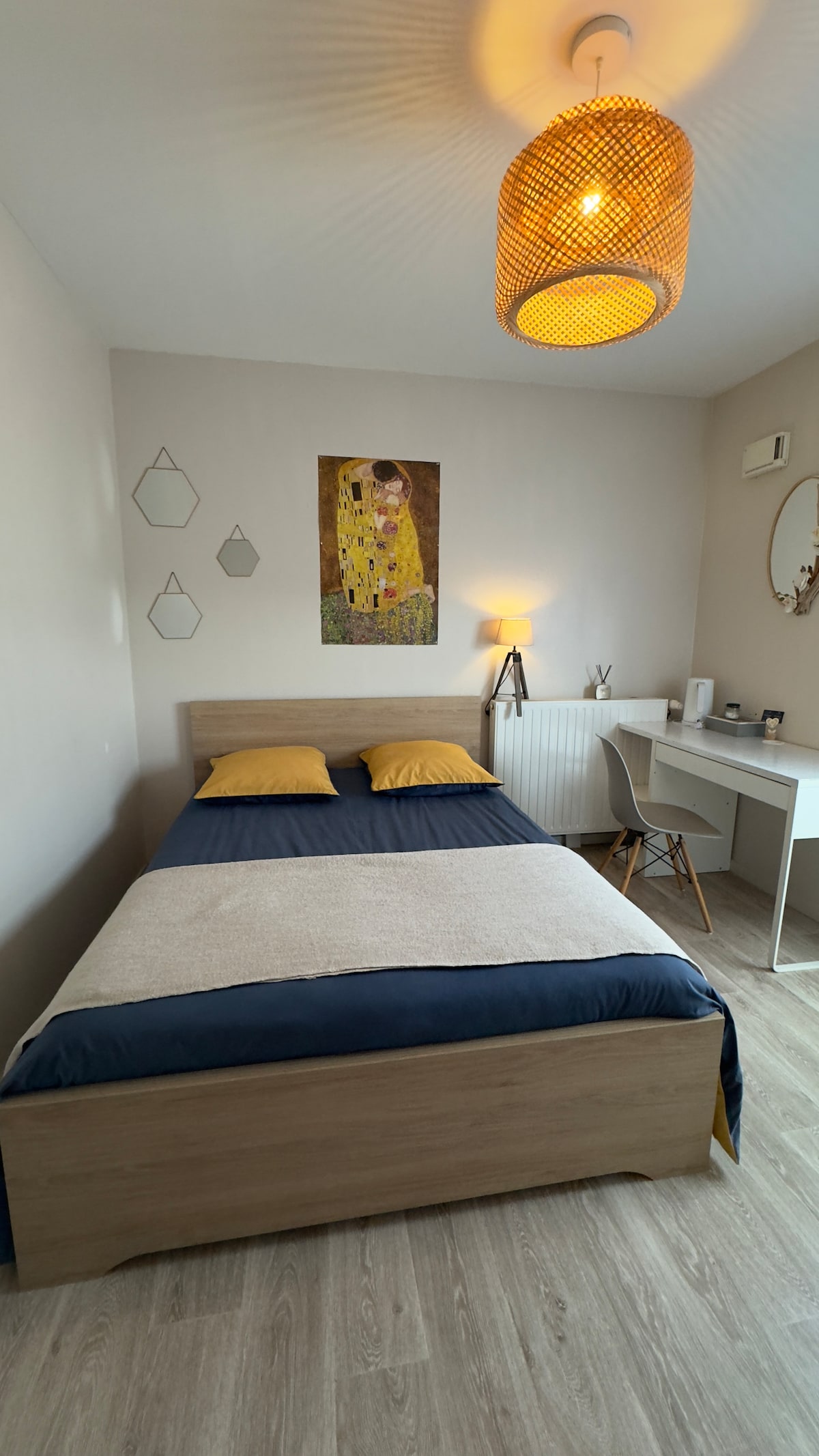 Pour un dépaysement total et un séjour au calme au centre de la cité historienne Bayeusaine, je vous propose une GRANDE SUITE PARENTALE privée de 40m2 avec une salle de bain comprenant une douche à l'italienne, une baignoire et un W.C. Vous pourrez profiter de la terrasse ensoleillée à tout moment de la journée. ATOUT MAJEUR : - -PETIT DEJEUNER A VOLONTE INCLUS DANS LE PRIX DE LA CHAMBRE et PARKING devant LA MAISON