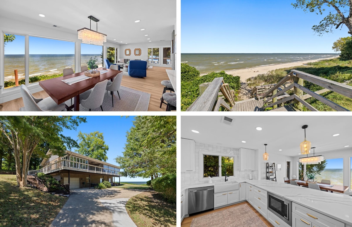 Year-round private beach oasis on Chesapeake Bay! Perfect Fall & Winter Escape. An hour from DC beltway & world away. Recharge & relax to the sound of waves & sailboats. Spacious & fully renovated, with modern features, ample outdoor terraces. Enjoy long walks, nature spotting (bald eagles, rays, dolphins), shark tooth collecting. Kayaks provided! Short drive to Solomons Island, and local amenities: restaurants, bars, store, national parks & vineyards. No parties or events. Only relaxing.