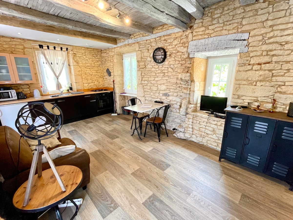 Profitez d'une ancienne maison en pierre rénovée au cœur du Périgord, à proximité de Montignac-Lascaux, Sarlat et la Vallée de la Dordogne. Cette maison comprend 2 chambres, une cuisine ouverte sur séjour, un grand salon . A l'étage se situe la salle de bain et les chambres. Les toilettes sont séparées.