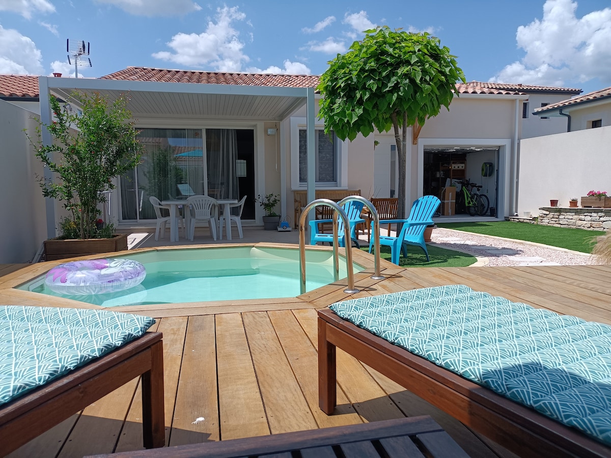 Maison de 42m² avec son jardin privatif de 100m² et 2 terrasses avec four a PIZZA. Une piscine privative de 10m² chauffée donnant sur la terrasse vous est réservée sur le terrain ( sans contrainte d'horaire pour l'utilisation) , un jardin méditerranéen est présent avec palmier, cocotier, citronnier, bananier et olivier. La maison comporte une cuisine américaine complète ( frigo, plaque à induction, fours , lave vaisselle, machine à cafés tassimo…) d’une table et 4 chaises.