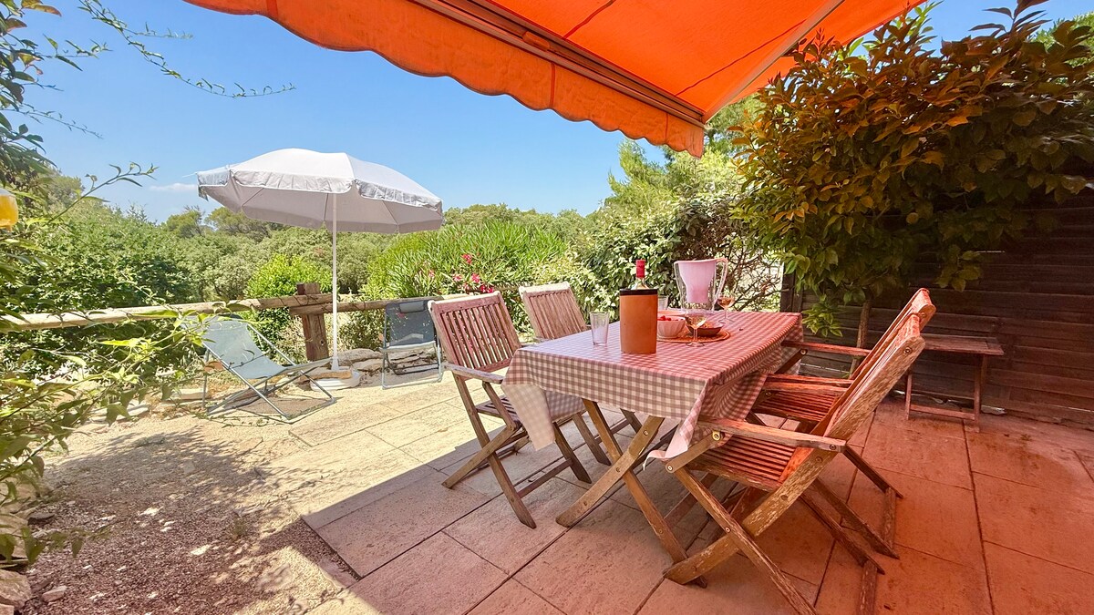 Charmant chalet de campagne situé dans un petit lotissement et pouvant accueillir jusqu'à 3 adultes et 1 enfant. Grand salon avec canapé convertible et cuisine équipée, le tout ouvrant sur terrasse verdoyante pour les repas. Une chambre avec lit queen size, salle d'eau avec douche. Le jardin clos offre une vue magnifique sur la vallée. Parking privé. Climatisation. Piscine privative en saison. wifi Le chalet et le jardin sont sans vis à vis et au calme. 30 km des plages 41 km de Montpellier.