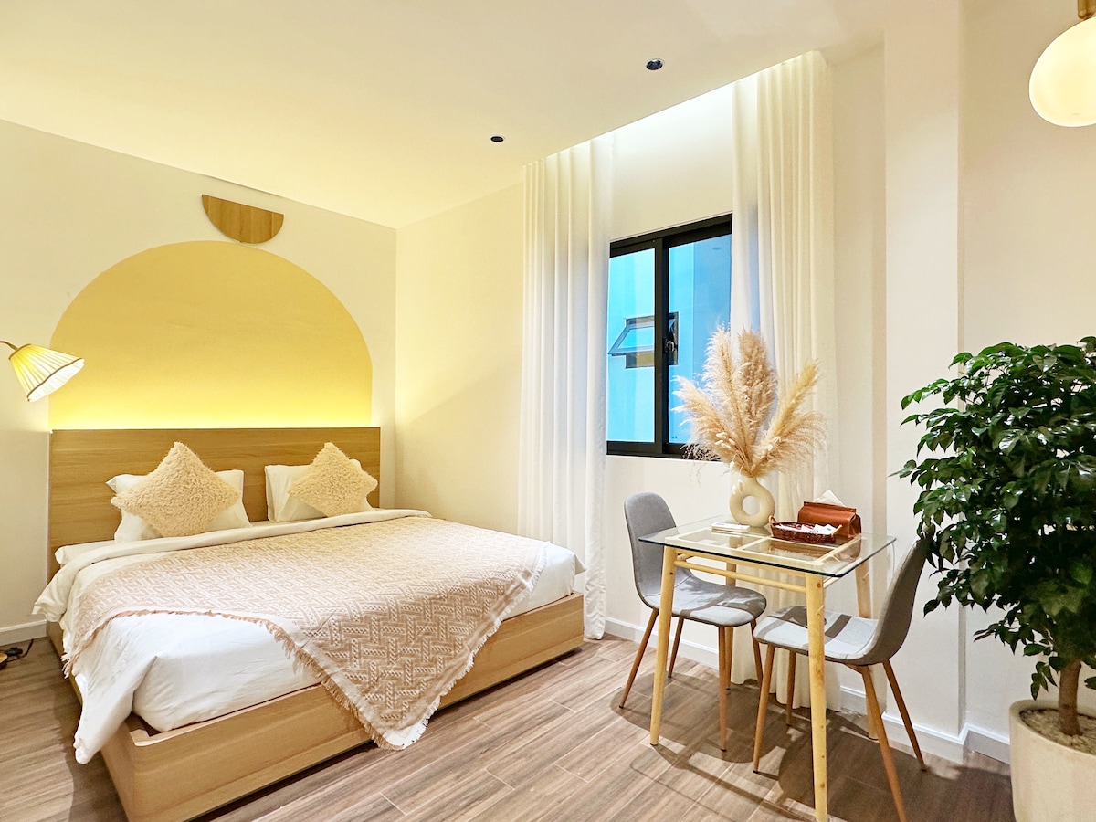 ⭐️ Cozy 2-bedroom apartment on the 2nd or 3rd floor with 2 private bathrooms, 2 bedrooms, 4 beds, a kitchen, dining area, balcony, and large windows for natural light. ⭐️ Enjoy the convenience of self check-in for flexibility upon arrival. ⭐️ Elevator access for easy movement between floors. ⭐️ LOCATION: - 5 mins walk to My Khe Beach - 5 mins by car to Dragon Bridge, night market, Han Market & city center - 15 mins to Da Nang Airport - 10 mins to Son Tra Peninsula & Marble Mountain