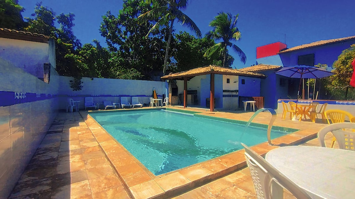 - Seu refúgio de paz em Barra do Jacuípe! Casa cercada de árvores frutíferas (manga, caju, coco) em um amplo quintal. - Relaxe na piscina privativa e na área gourmet com churrasqueira. - Localização perfeita para quem ama a natureza: a 100 metros do Rio Jacuípe e a 700 metros da praia. - Acomoda até 6 pessoas em 2 quartos. - Seus pets de pequeno porte são bem-vindos!