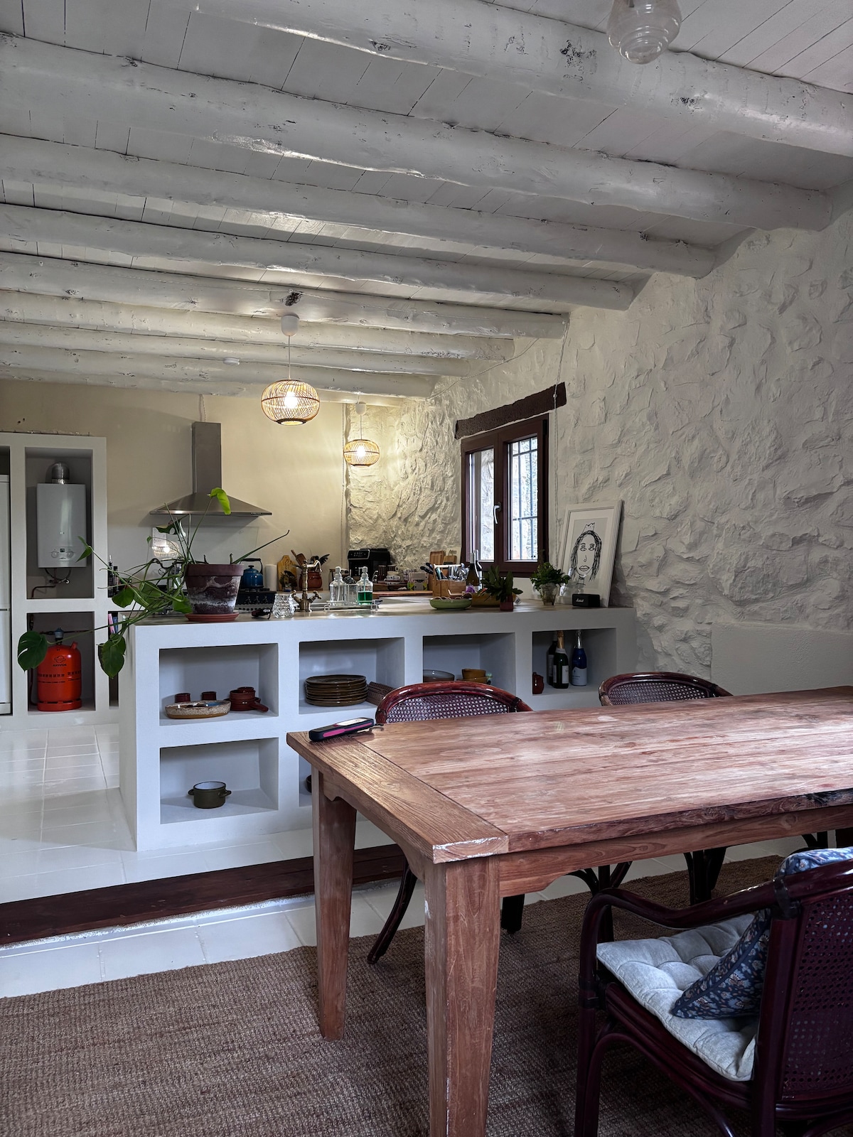 The Stone House is built sustainably with stone and wood over an ancient "era". It has three rooms, two of them connected by a small staircase. Enjoy wonderful views of the mountains under the freshness of a lush vine and a small pool of fresh water (not available in winter). The house is decorated with paintings, antique furniture and special objects. And all this in Matet, a small village within the Natural Park of the Serra d'Espadà in Castellón.