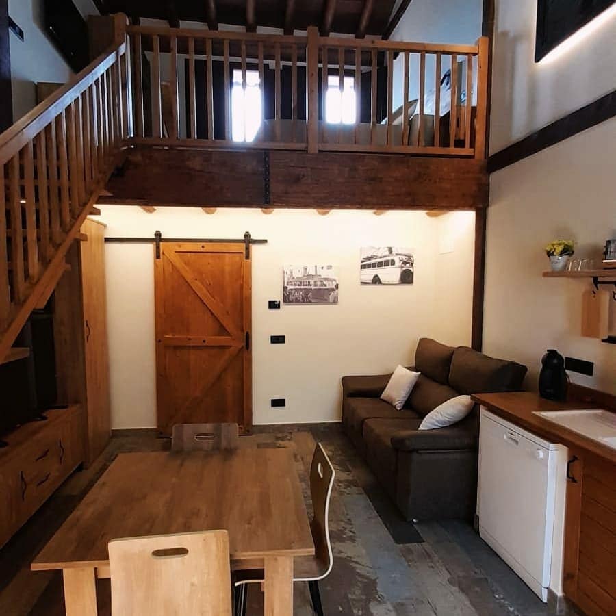 Gran loft con maravillosas vistas a la montaña y el Jardín Botánico del municipio. Es la planta de arriba de una casona restaurada de principios del S. XVIII. El loft es abierto, tiene una zona con cama de matrimonio y dos terrazas, otra zona comedor con smart TV y sofás y otra zona con un sofá-cama doble. Además tiene baño con ducha y un altillo al que se accede por una escalera espectacular en el que está la cocina, completamente equipada y con zona de comer Ideal para una o dos parejas.
