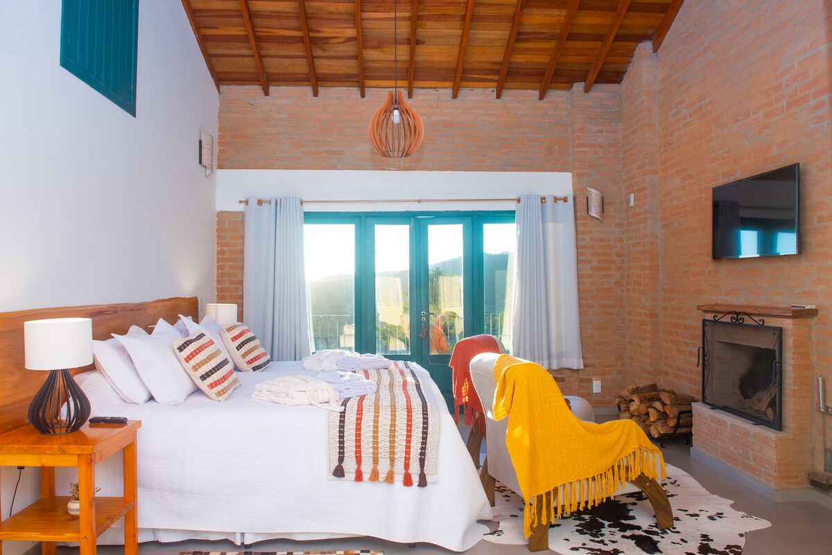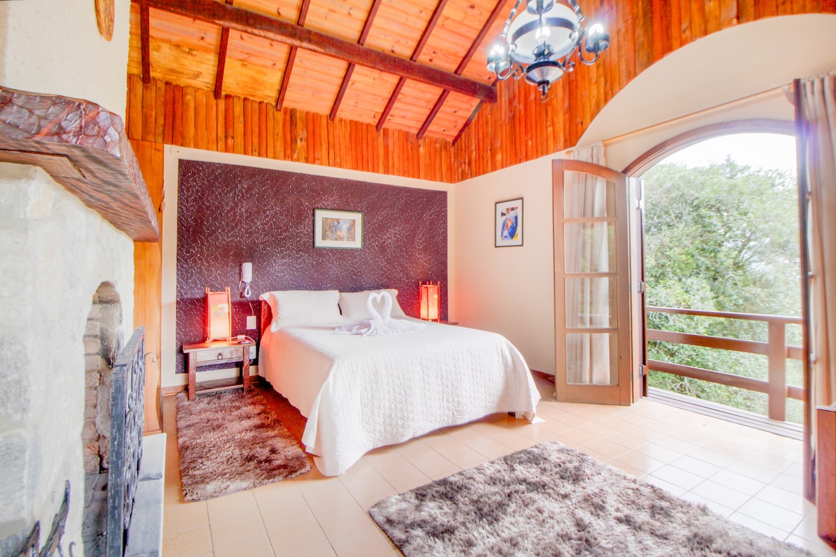 Este quarto para casal oferece muito conforto e uma ótima localização a menos de 5 minutos da Vila Capivari, centro turístico de Campos do Jordão. Apenas a observação de que o acesso aos quartos possui escadas, não sendo recomendada para pessoas com mobilidade reduzida.