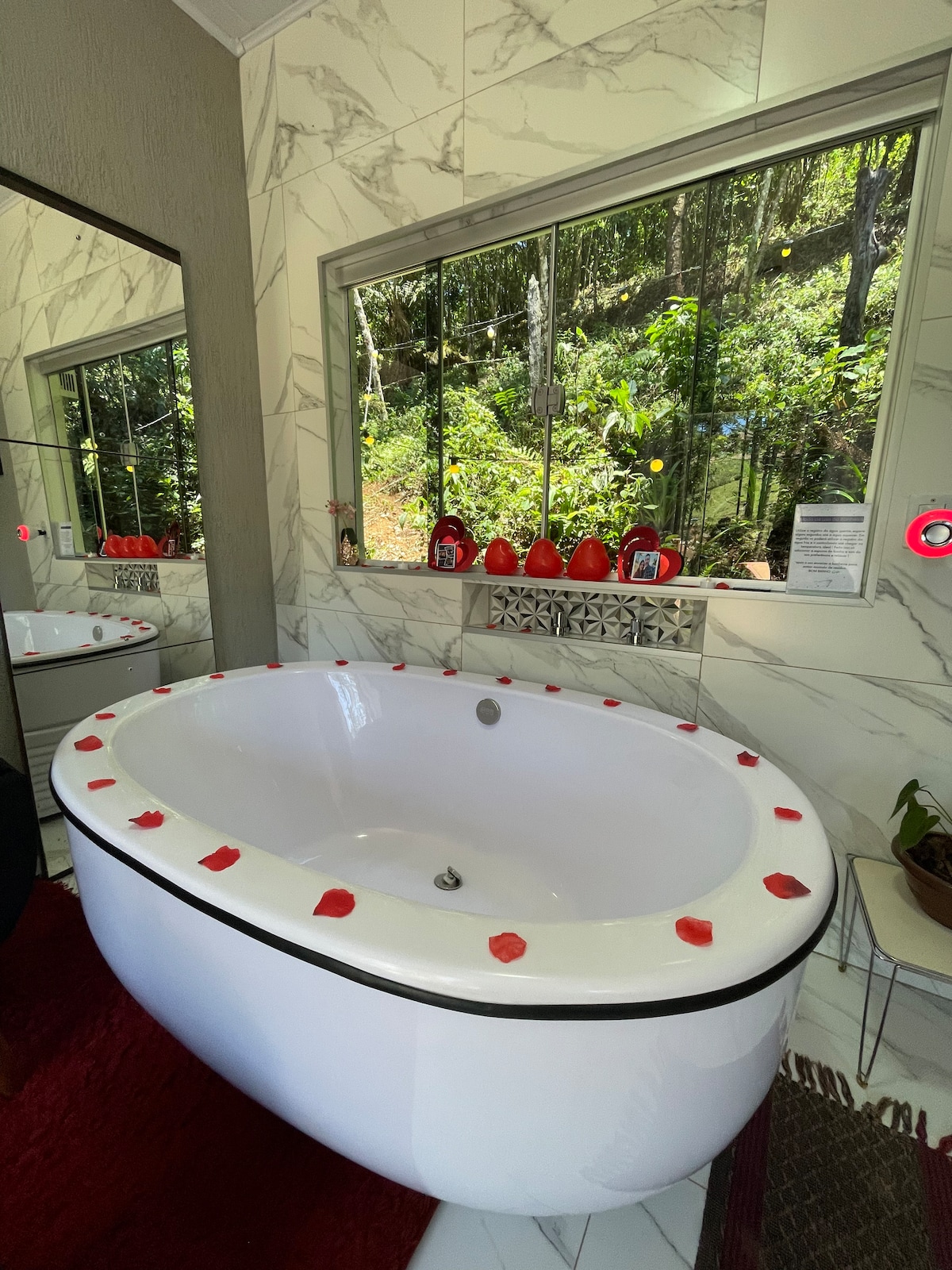 Relaxe neste lugar único e tranquilo. Vista maravilhosa . Lugar para casais apaixonados Chalé aconchegante, tranquilo. Banheira dupla aquecida com hidromassagem que fica no deck externo com vista para as montanhas Piscina com borda infinita com vista para as montanhas. O quarto cama queen e ar condicionado No banheiro chuveiro a gás e torneiras aquecida Disponibilizamos roupões de banho Nossa cozinha é toda equipada com Cafeteira , forno Elétrico , fogão elétrico de 5 bocas,
