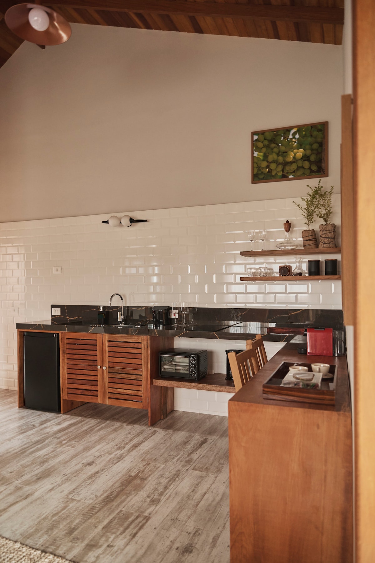 O Arbequina é um charmoso loft no meio da mata, com uma banheira antiga dentro do quarto, cama king size e roupas de cama e banho de ótima qualidade. No banheiro tem ducha e aquecedor a gás. Uma pequena cozinha equipada com frigobar, fogão cooktop, utensílios e máquina expresso. Com total privacidade e localizado numa rua tranquila sem saída.