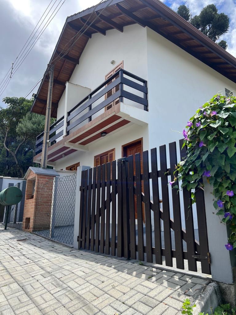 Linda casa com a melhor localização! A três quadras da av principal, com 300 m2 de construção. Terreno de aprox 2000 m2 , ladeada por pinheiros, araucárias e veg. nativas. Arquitetura moderna, voltada para o verde , ideal para o descanso. 3 suites, lavabo, hidrom. suite casal, wifi , lareira nas suites piso sup., lareira externa na varanda da casa e na sala tv e pe direito duplo com vista imperdível. Imensa varanda interligando os qtos no pav sup. Acesso a vista/ cobertura no 3 andar.