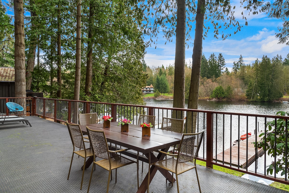 "This spectacular high bank waterfront view property offers a cozy and peaceful house that is the perfect place to relax and unwind. This 2 bedroom, one bathroom house offers two king size beds one in each bedroom, and one bunk bed with 2 twin size mattresses on it in the game room. The kitchen is well appointed with cooking tools and appliances. There is an in-house washer and dryer. BBQ on deck. WiFi and 1 Smart TV. Just 3 miles to beautiful Langley village by the sea.