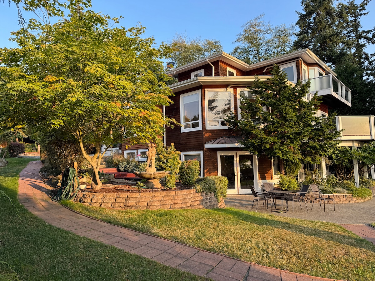 Home on the Harbor, a private and serene waterfront property with a modern home overlooking Holmes Harbor with amazing sun rise views and detached rustic cabin. Immerse yourself in nature, with majestic evergreens, rocky shores, bald eagles, and the occasional whale sightings. Treat yourself to a rejuvenating getaway, with beach walks, or romantic nights in. The detached cabin is included and provides privacy with a queen bed, bathroom and a kitchenette