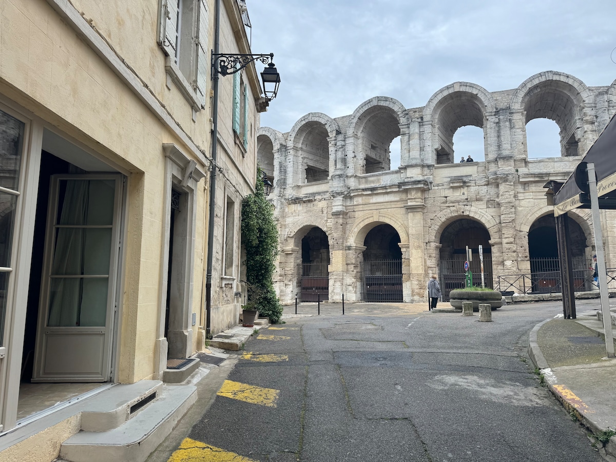 Nous sommes un couple d’architecte qui avons rénové entièrement cette typique maison de ville arlesienne. Elle mêle l'esprit sud et le design contemporain que nous adorons. La terrasse sur les toits accueille un bassin où l'on peut se baigner tout en regardant les arènes d'Arles. Au rdc notre bureau sur rue peut servir de lieu d'exposition ou de zone de travail. La maison a de nombreux escaliers anciens et non sécurisés et n’est pas adapté aux jeunes enfants. Bienvenue !