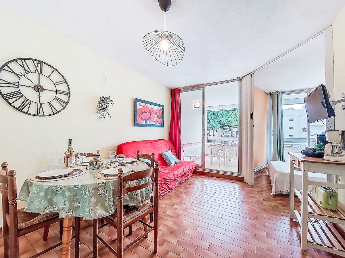 All discounts are already included, please go ahead and book the property if your travel dates are available. Below please see all the listing details "Chez Lucie", 2-room apartment 48 m2 on 1st floor. Comfortable furnishings: entrance hall. Living room with dining table, TV, flat screen and air conditioning. Exit to the balcony. 1 room with 2 beds (90 cm, length 200 cm). Kitchen (2 induction hot plates, toaster, kettle, microwave, electric coffee machine) with dining table.
