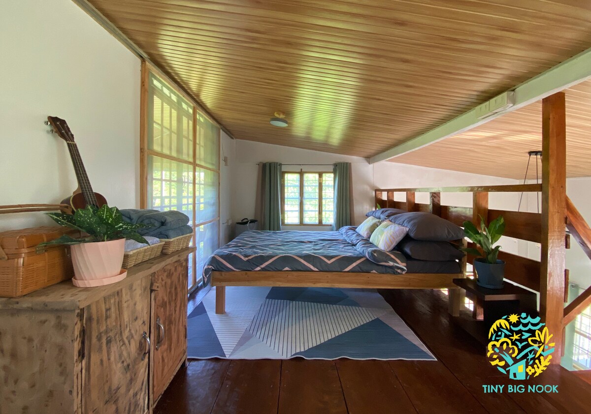 Tiny BIG Nook sits in a spacious paradise with its own swimming pool, private beach, mini forest, function hall, flower garden, fishpond, creek with view deck, nipa plantation, bonfire and campfire areas, and a badminton court all within a 10-min walking distance. The space will remind you of the simple joys of life as you reconnect with nature and savor the peace and quiet in your special tiny big nook. Just bring yourself and kickstart your own adventure!