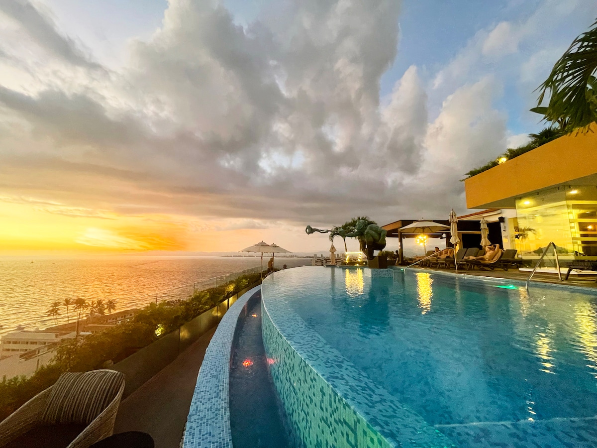 Despierta con el sonido del mar y una vista increíble desde tu balcón privado en este moderno estudio frente a la playa en Las Glorias. Perfecto para parejas o viajeros solos, ofrece cama King, WiFi rápido, cocina equipada y acceso directo a la playa. Relájate en la alberca en la azotea del piso 30 o disfruta de amenidades tipo resort: jacuzzis, gimnasio, y más. A minutos del Malecón y Versalles, pero con la tranquilidad ideal para desconectarte.