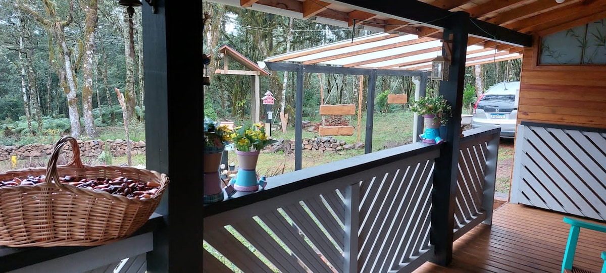 Relaxe neste espaço calmo e cheio de estilo; Aproveitando ao máximo, uma área ampla de floresta nativa, cercada por lindas árvores e pinheiros de araucária, com um rio que cerca a propriedade, propícia fazer um belo de um piquenique 🧺, e se você quiser ter um momento de aventura, pode ser feito algumas trilhas pela propriedade, além de ter uma linda cachoeira que fica bem próximo a propriedade. Aceitamos o seu pet🐾, assim como você ele vai amar o amplo espaço para se divertir.