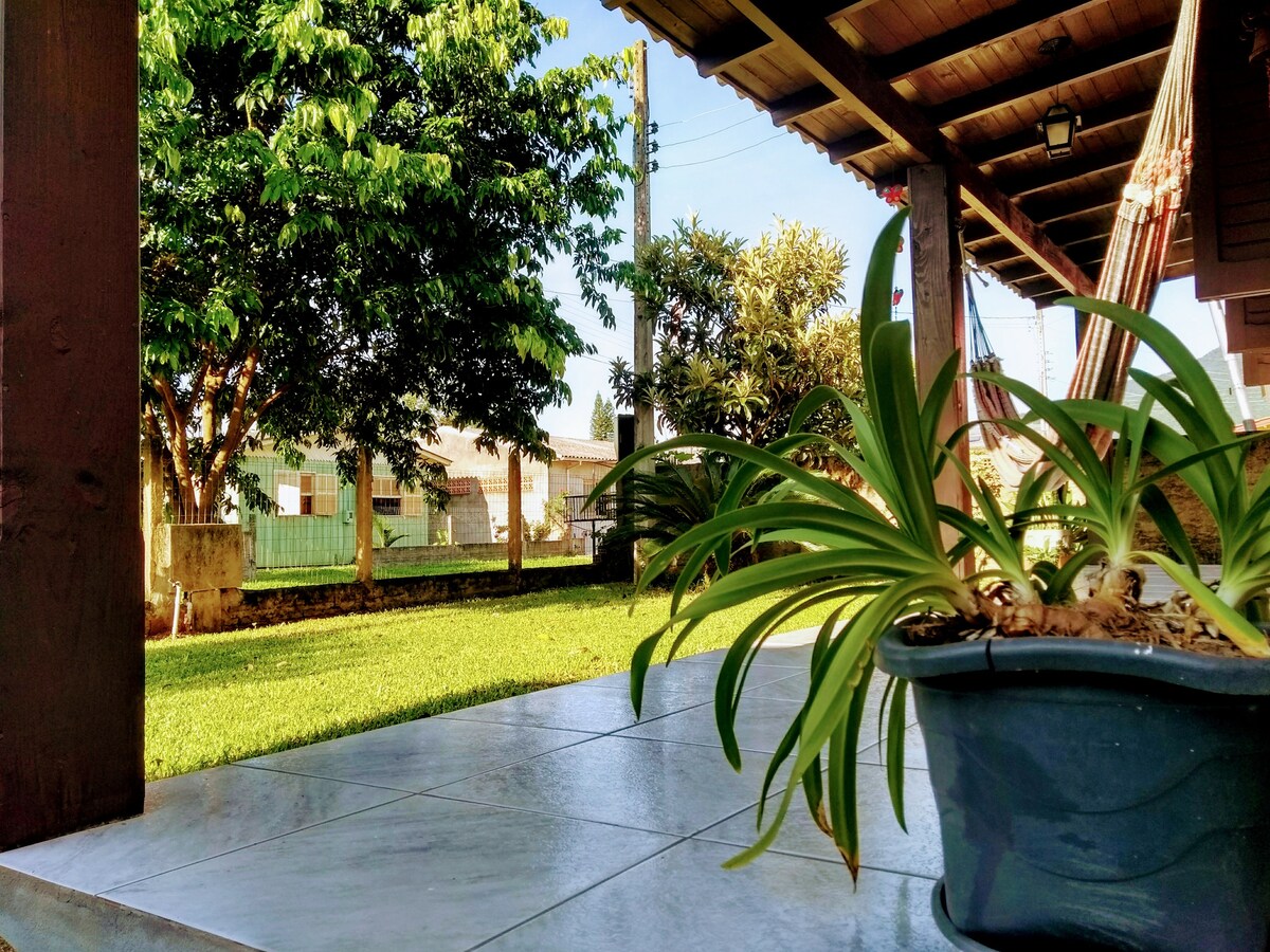 Uma casa localizada em um lindo e seguro bairro próximo ao rio Mampituba com vista para os canyons, pomar horta balões sobrevoando por cima da casa silêncio que não se consegue vivendo na cidade. A 5 minutos do centro de Praia Grande.