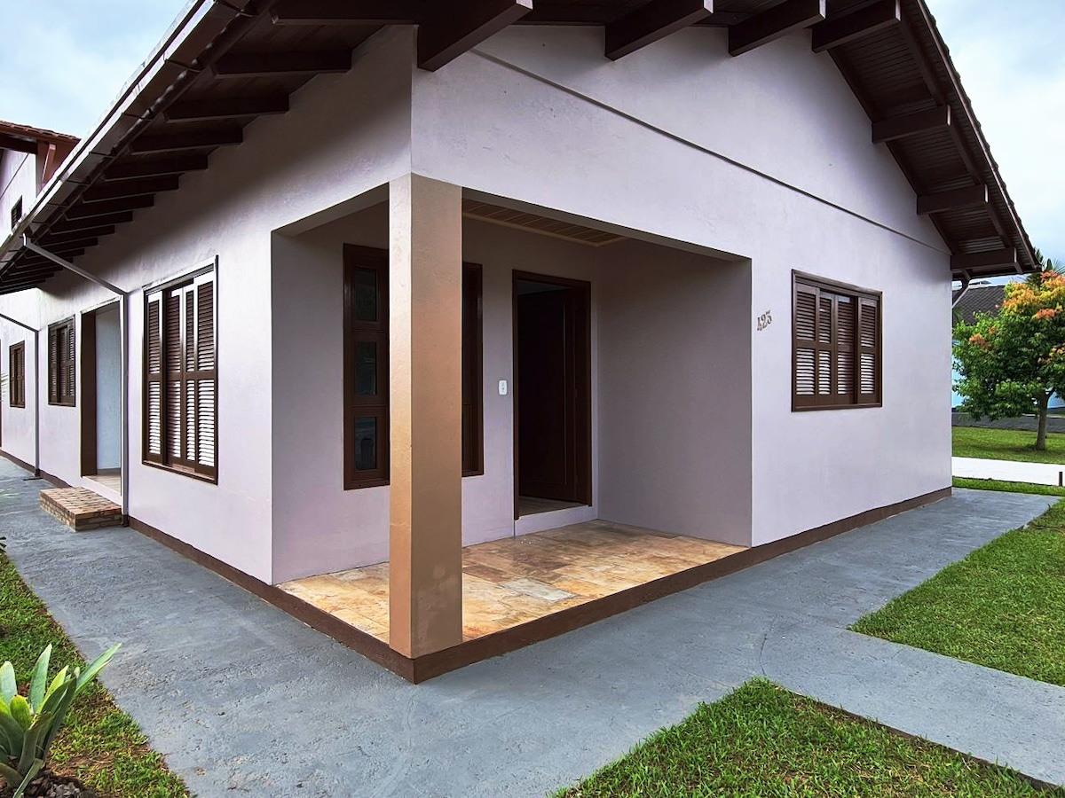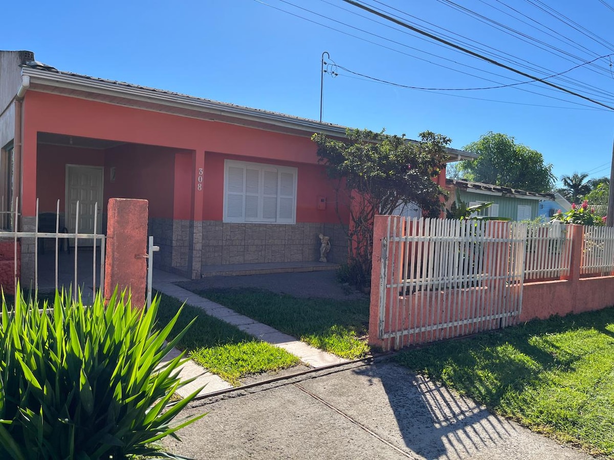 Casa com três quartos, sala e cozinha conjugada, dois banheiros, ar condicionado e área de lazer com garagem. Cozinha completa, microondas, airfryer, jarra elétrica, liquidificador e forno elétrico. A casa fica próxima ao maior mercado da cidade, padaria e restaurante. Praia Grande é o lugar ideal para quem quer ficar perto da Serra e da Praia. Muitas opções de trilhas e passeios, como voo de balão. A apenas 30 min da Praia de Torres RS e 3km da subida da serra do Faxinal!!