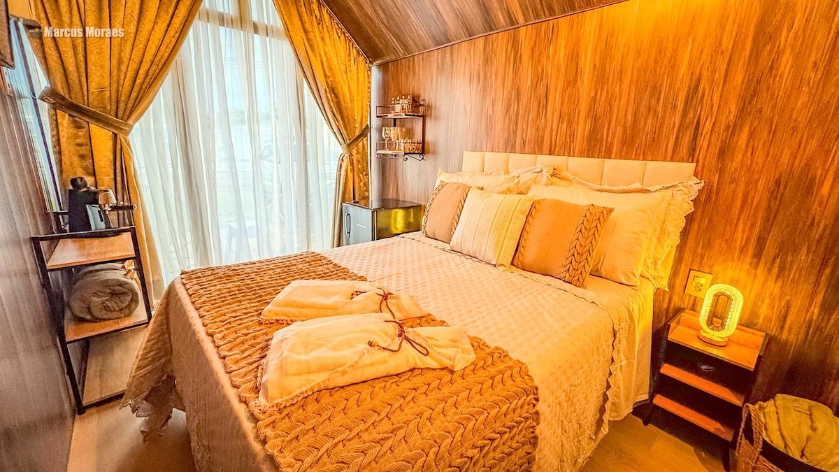 Imagine yourself in a house custom-made for unforgettable moments – as a couple, with family, or simply in peace with yourself. Welcome to Tiny House Cambará, an exclusive retreat in the midst of nature, with the comfort and charm that only those who have traveled a lot can appreciate. The result? A compact, luxurious house full of soul, made with steel frame – a modern, sustainable technique perfect for the mountainous climate.