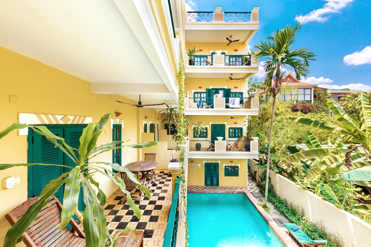 Experience the timeless elegance of our French Colonial-inspired villa, nestled amidst lush green gardens and featuring classic design elements. Each villa room offers a private retreat, while our shared seating areas invite relaxation amidst nature. Ideally situated just steps away from the city center and Pub Street, you'll enjoy access to our refreshing pool, daily breakfast, and turndown service. Discover the perfect blend of historic charm and modern comfort at our unique sanctuary.