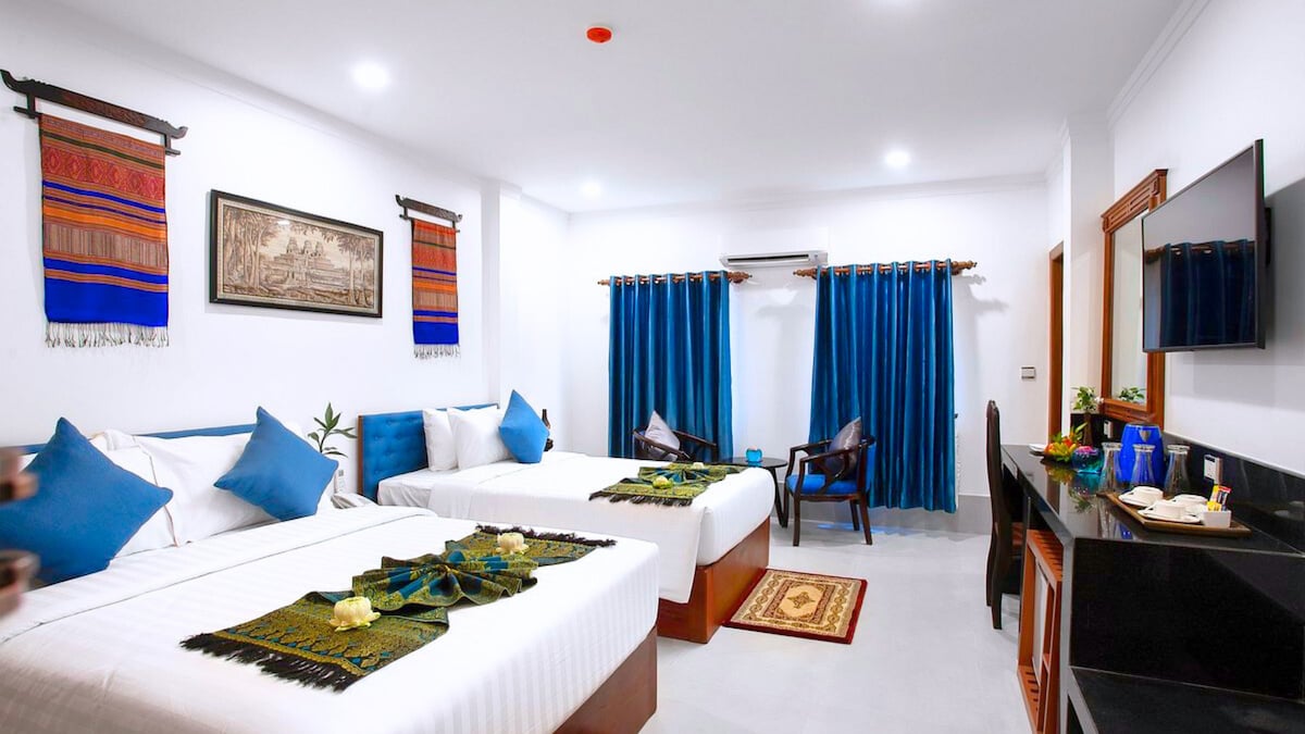 CHHOUY VATHNA ANGKOR BOUTIQUE is ideally situated in the heart of Siem Reap. It's easy access to popular shops, restaurants, Bank, Old Market, Night Market, Pub Street and other tourists’ top attractions site. We also have an on-site swimming pool, Restaurant, and coffee shop. We can also help you to organize tours to Angkor Wat and other tourist sites as you wish
