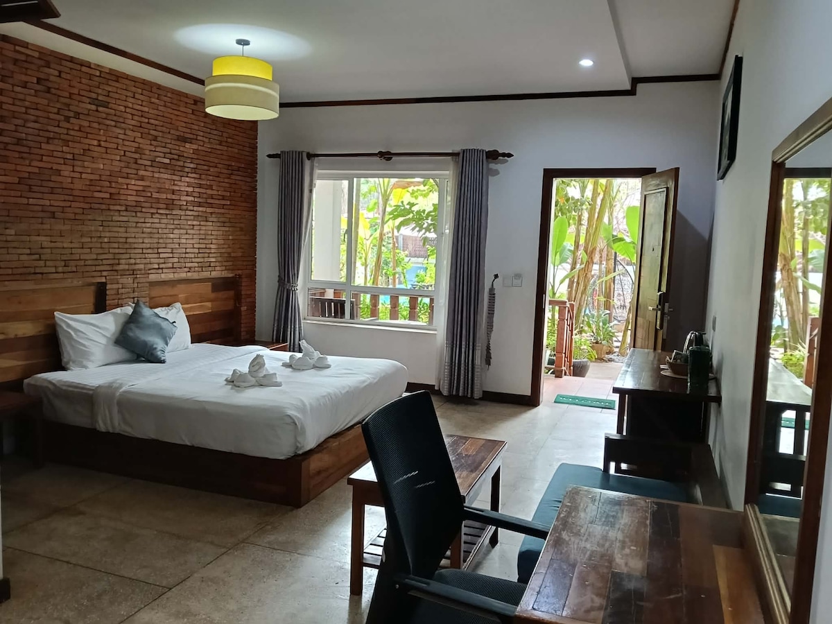 Natural Relax Villa This room has 1 King bed Deluxe Pool View with balcony view to swimming pool and surrounding green garden, air-con room, hot water, free using internet as wifi and swimming pool, housekeeping. Breakfast is not included but available in our restaurant Available Tour desk, transportation by Tuk-Tuk or Car or Minivan, bike rental, Tour guide. Special price for appointment pick-up service fee from airport or bus station.