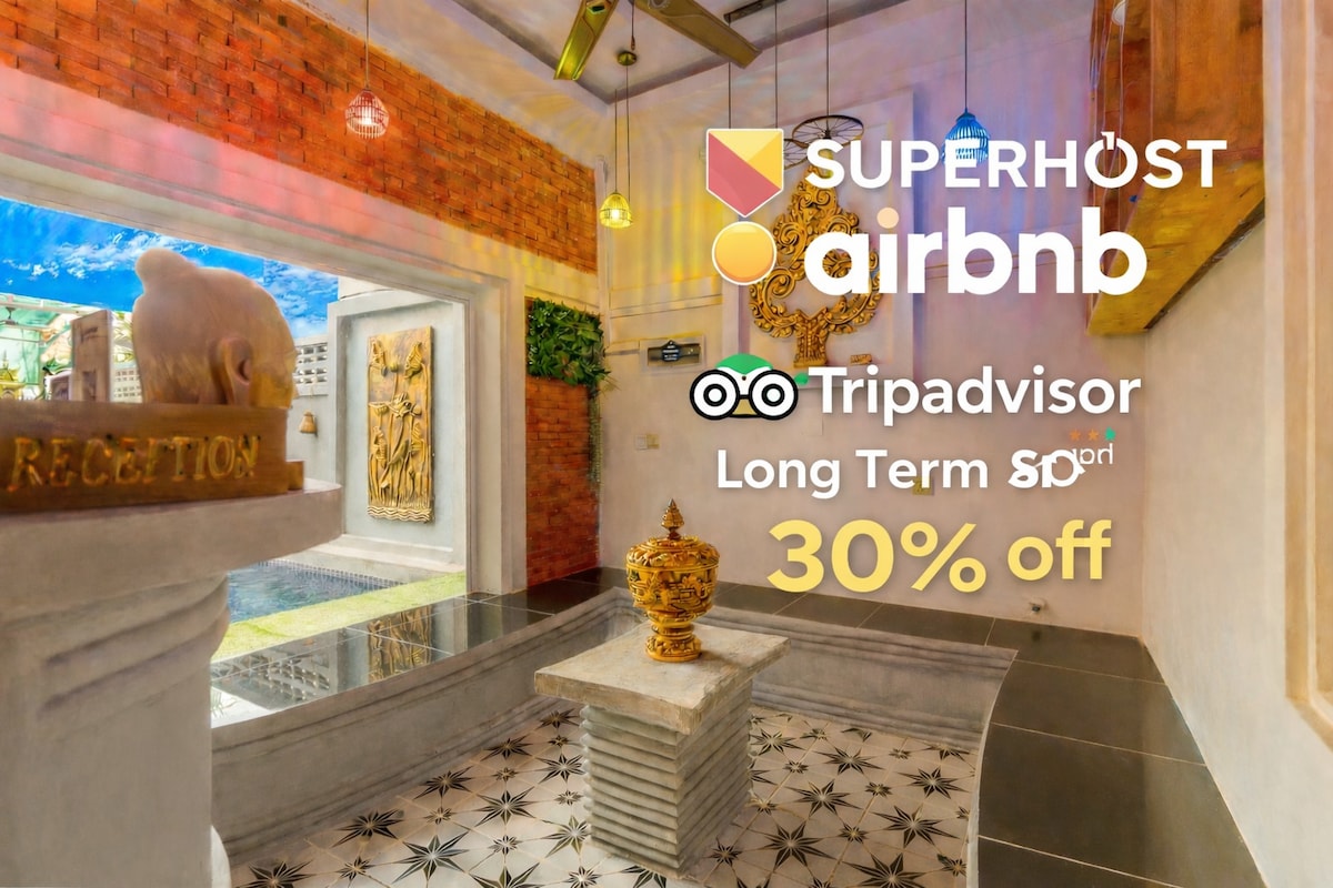 Experience a peaceful and relaxing stay at Saralya Home. Enjoy your private studio, complete with a private kitchenette and bathroom, as well as a Smart TV with Netflix, a sofa bed, a desk, high-speed internet, and your private patio steps away from the pool. Use the communal areas (the swimming pool and the vast communal area with fully equipped kitchen) to your wishes. We will go to great lengths to ensure you have a wonderful experience at Saralya Home and in Siem Reap. Welcome home!