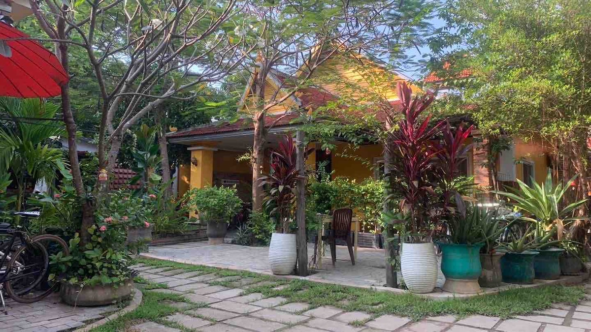 Convenient for group vacations, family-friendly place, mini kitchen available for cooking, greenery surrounding villa offer outdoor dinning enjoyable at daytime. Just 5 minutes drive to downtown and short walk to local market for food shop for cooking. Tuk Tuk service available to organize for touring on your request