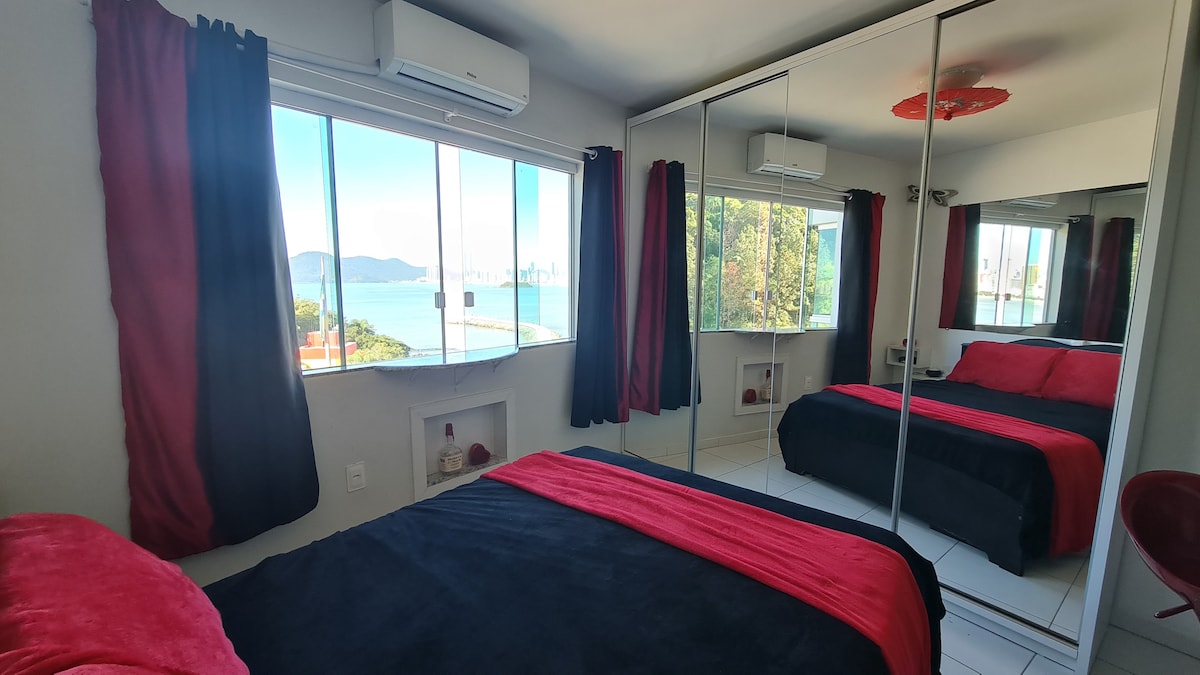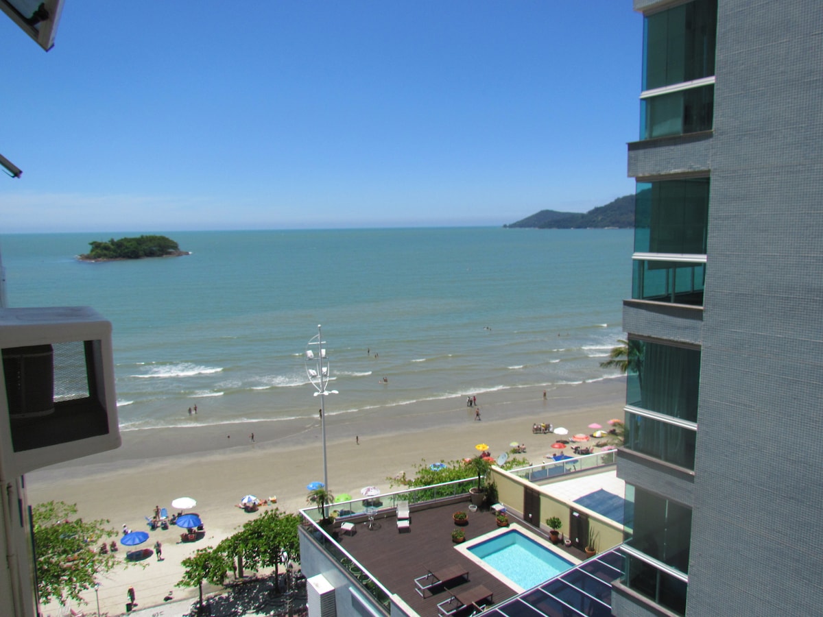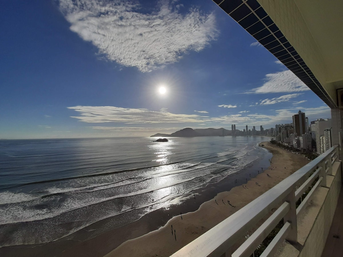 Ideal para namorar! Kitnet com vista para o mar, morro e big wheel. Não tem janelas de outras edificações para o frente. Vista maravilhosa pra orla de BC Confortável e aconchegante! Split A/C quente/frio. Piscina, Jacuzzi, Academia e Garagem. Pequeno mas totalmente confortável. Bem conectado: ônibus locais param no frente. Cafeteria e pizzaria, loja de convencias e lavanderia auto serviço 24 hs dentro do predio . Kiosque de aluguel.