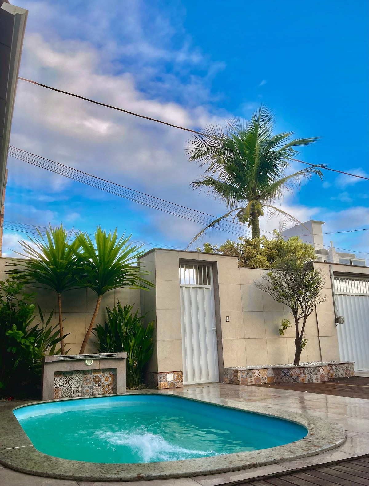 Linda Casa, projetada para oferecer privacidade e lazer exclusivo. Composta por 2 quartos climatizados sendo 1 suíte master de luxo, sala de estar aconchegante integrada à varanda, cozinha gourmet super equipada (com AirFryer e purificador), lavanderia com máquina de lavar e uma incrível área externa com piscina, cascata e churrasqueira coberta. Garagem ampla e coberta, portão fechado e total segurança. Internet rápida.