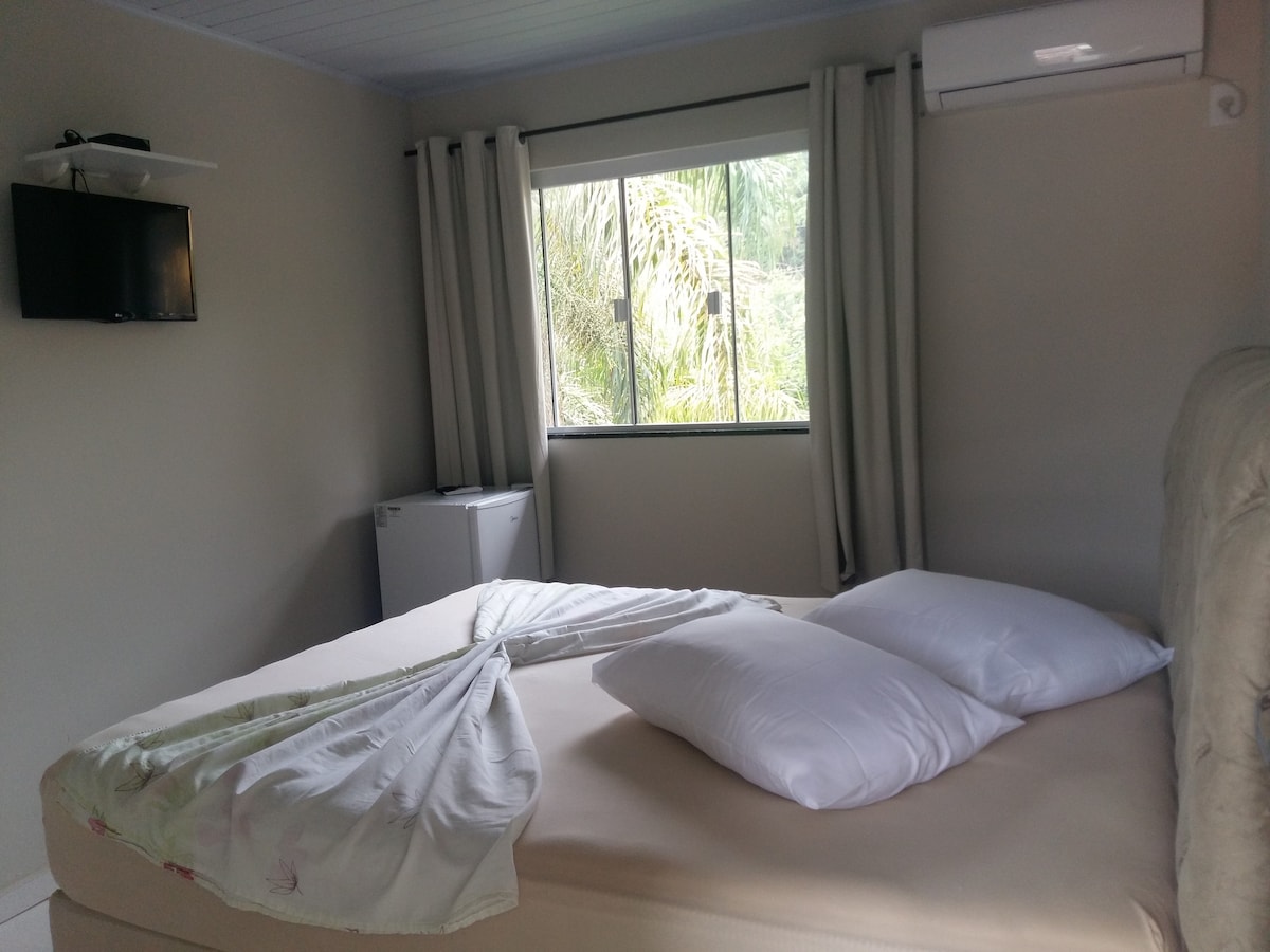 Pousada localizada em Penha/SC, apenas 5 minutos de caminhada até Beto Carrero World. A cidade possuiu 19 praias, e a mais próxima se encontra a 600 metros de nossa pousada. Nosso quarto possui frigobar, tv com netflix, ar condicionado e wifi com velocidade. Oferecemos todas as roupas de cama, assim como toalhas, e papel higiênico. Ideal para famílias que buscam um bom descanso após um cansativo dia de parque. observação servimos café da manhã à parte consultar com anfitrião
