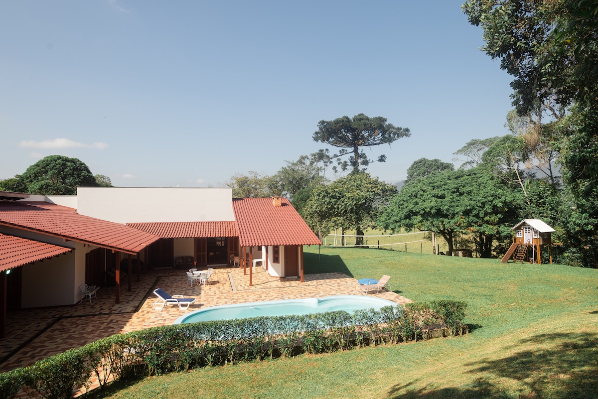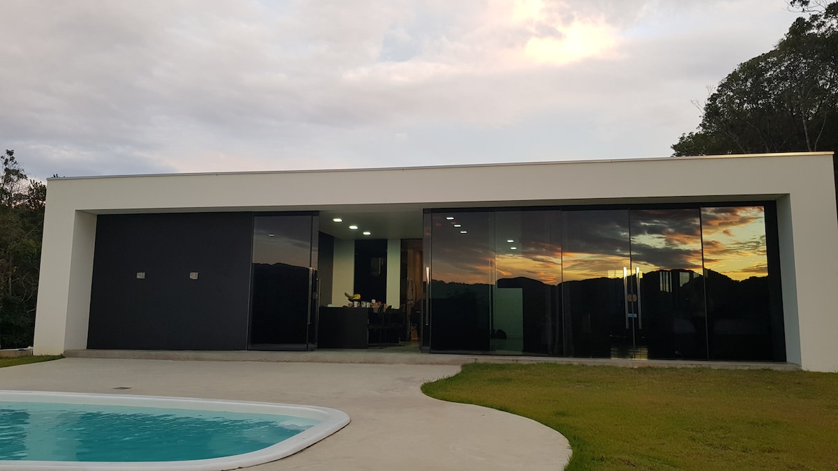 Belíssimo espaço com 10.000 metros quadrados, um grande gramado, lago, jardim, horta, rancho com fogão a lenha e cozinha, piscina com vista panorâmica, e uma casa com arquitetura moderna e vista espetacular com duas suítes e hidromassagem. Situado a 13km da praia central de Balneário Camboriú é Ideal para curtir momentos inesquecíveis com família e amigos estando confortavelmente integrado com a natureza e próximo a inúmeras praias.