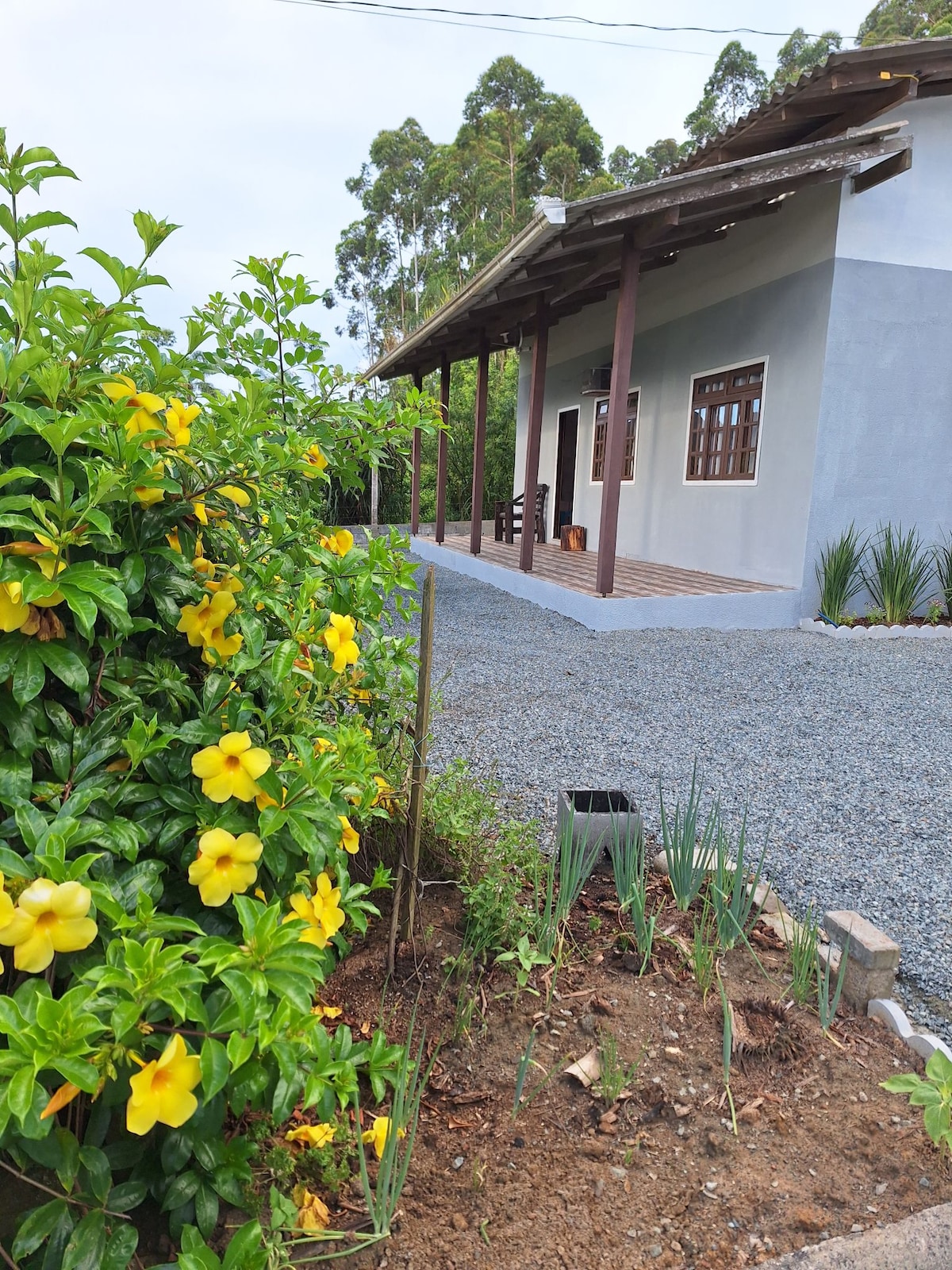 Como mostram nas fotos, casa de pousada com jardim, 2 quartos, cozinha e sala amplas em conceito aberto, 02 banheiros toda decorada com moveis sob medida, 2 cama queem, sofá cama, uma linda varanda com mesa e poltrona para o jardim. Câmeras de segurança, portão eletrônico. A casa tem dois pavimentos, independentes em tudo, inclusive as garagens. O Anfitrião mora próximo e está a disposição para o que precisar.