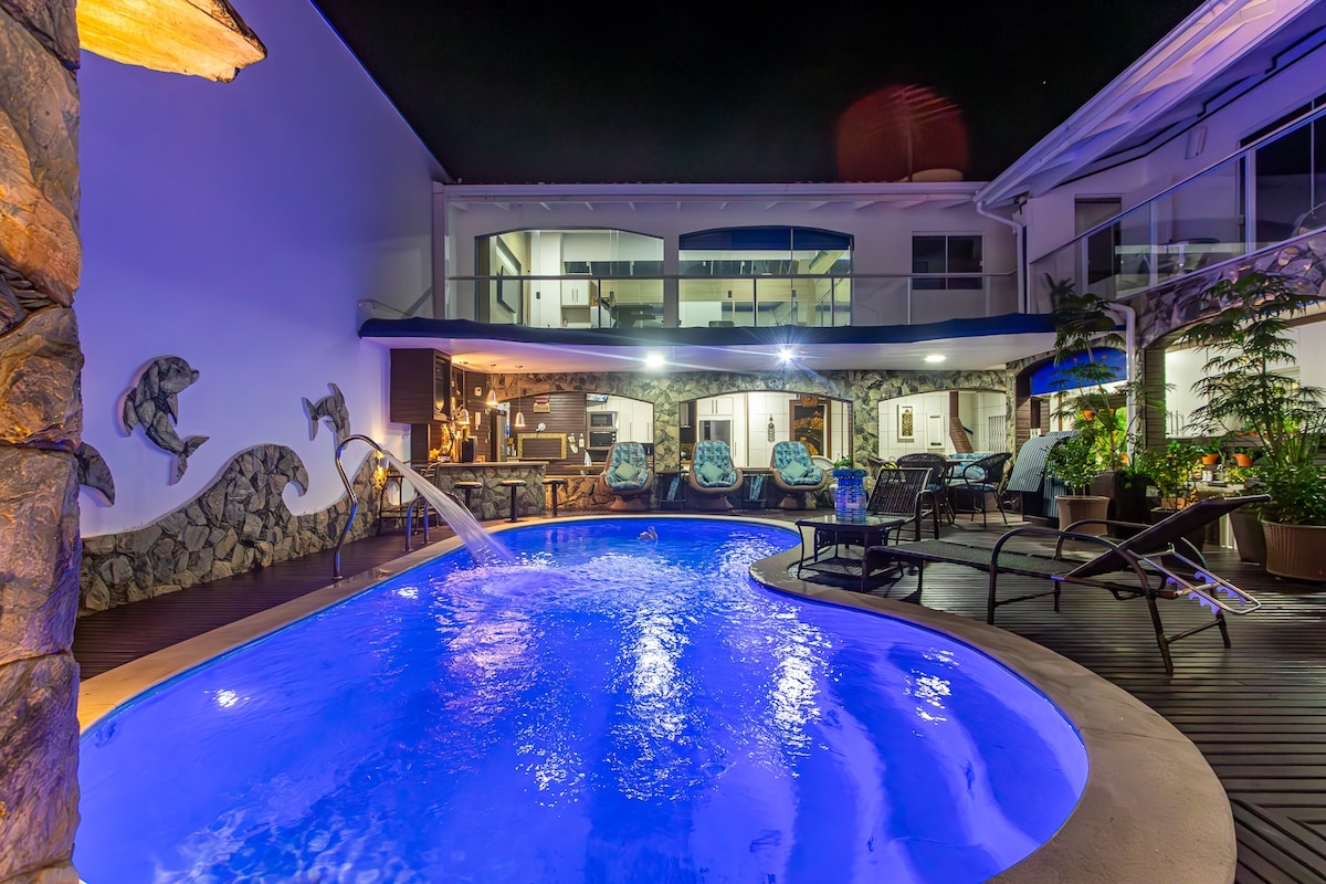 Casa em Balneário Camboriú c/ piscina vista infinita para as montanhas e Cristo Luz, com Sinuca, Hidro aquecida, PingPong, Academia, fica 1km da Roda Gigante! 4andares, 3salas, escritório wifi, cozinha nova completíssima, 3quartos todos c/ ar condicionado e tv, camas novas e confortáveis, roupas de cama, mesa e banho brancas e cheirosas, 2bwc, lavabo, lavanderia, garagem 2carros, jardim, churrasqueira, terraço360°. Espaços encantadores e muito conforto em meio à natureza, viva esta experiência!