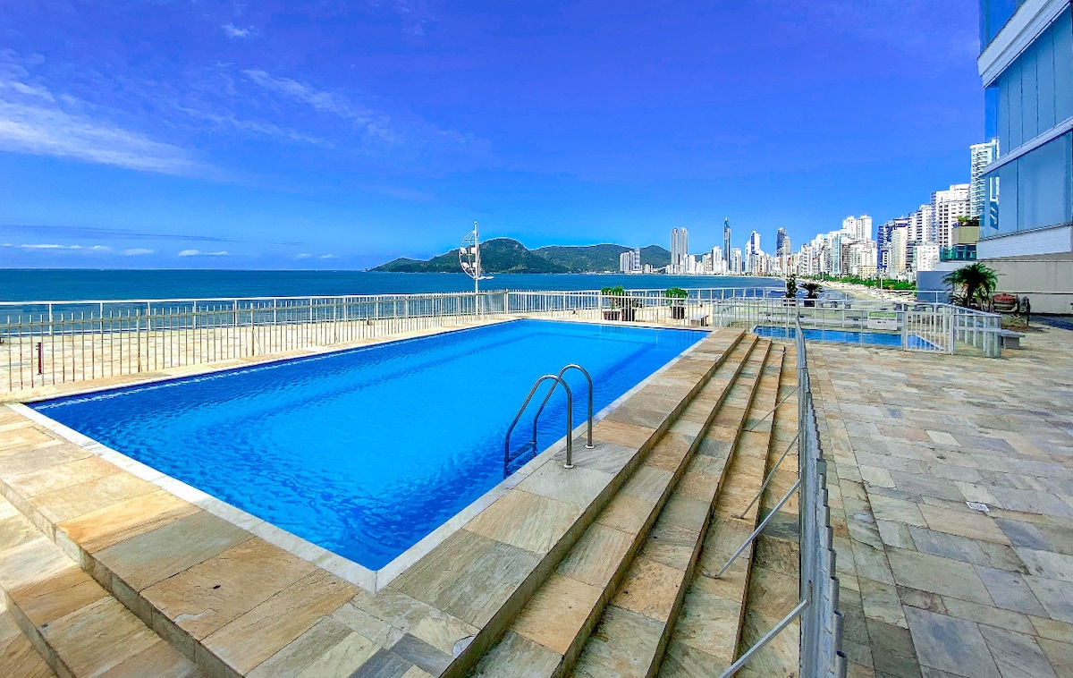 NOVO- RECÉM REFORMADO. Muito conforto, último andar, uma cobertura de revista com uma vista deslumbrante. Decorada com muito requinte e sofisticação. Totalmente equipado, 2 vagas na garagem, 2 piscinas (abertas no verão), 180m2 privativos no 28° andar com a melhor vista de Balneário Camboriú! Telas nas janelas dos quartos, berço e banheira para bebês! Na melhor localização da beira mar, em frente à Ilha, perto dos principais restaurantes da orla. Mercados, padarias e farmácias próximos.