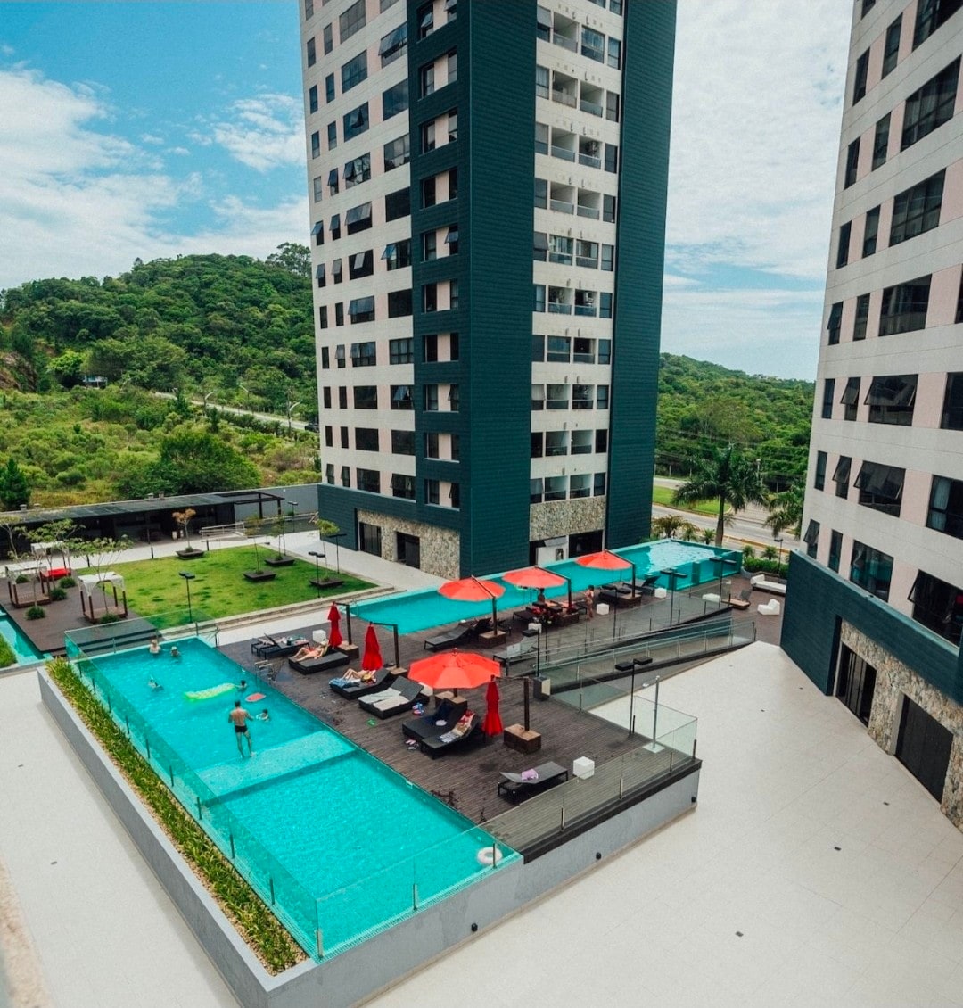 Apartamento completo na Praia Brava: 🛏️ 2 quartos com camas de casal e ar-condicionado ❄️ Sala climatizada 🍳 Cozinha equipada 📶 Wi-Fi e vaga de garagem ampla e coberta 🏊 Piscina de lazer e semiolímpica 💪 Academia | 🔥 Churrasqueiras | 😌 Sauna | 🎯 Sala de jogos 🌄 Vista para o morro com pôr do sol incrível Ideal para casais, famílias ou amigos. Conforto e lazer em localização privilegiada!