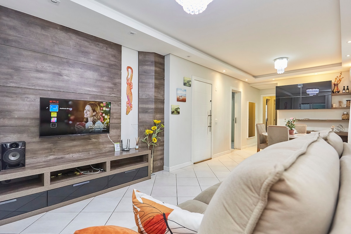 Lounge Apartment, located 5 minutes from Brava Beach and 10 minutes from Balneário Camboriú. The location is perfect. Only 5 blocks from Beach. Close all parties and restaurants. Condo with complete infra, Pool, Gym, Steam and 5 Barbecues. The apartment has Mountain-facing Jacuzzi with hydro and chromotherapy. Ideal for relaxing or take a romantic time. It has 58 'smart TV in the living room and 40' in the bedroom. Full kitchen. Machine washes and dries. You will love this place.