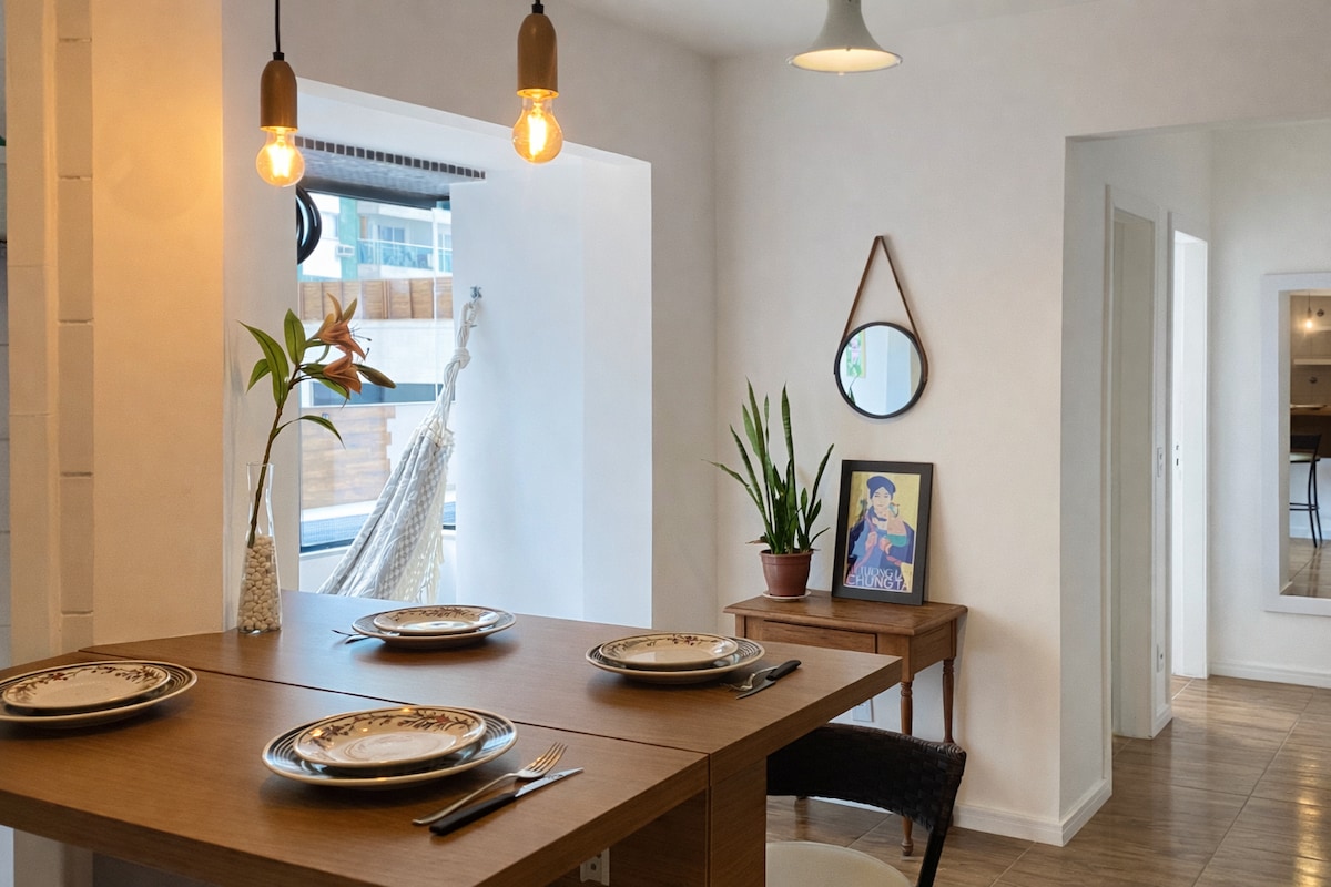 Apartamento Aconchegante com Sacada e Churrasqueira 🌊✨ Nosso apartamento é amplo, arejado e perfeito para quem busca conforto, ele possui: Um quarto com cama box de casal e ar-condicionado e um roupeiro; Sala de estar com TV Smart, Netflix e Wi-Fi, integrada à cozinha completa com todos os utensílios e eletrodomésticos que você precisa; Um banheiro; Uma sacada encantadora com vista panorâmica para a praia, com uma churrasqueira ideal para momentos de lazer.