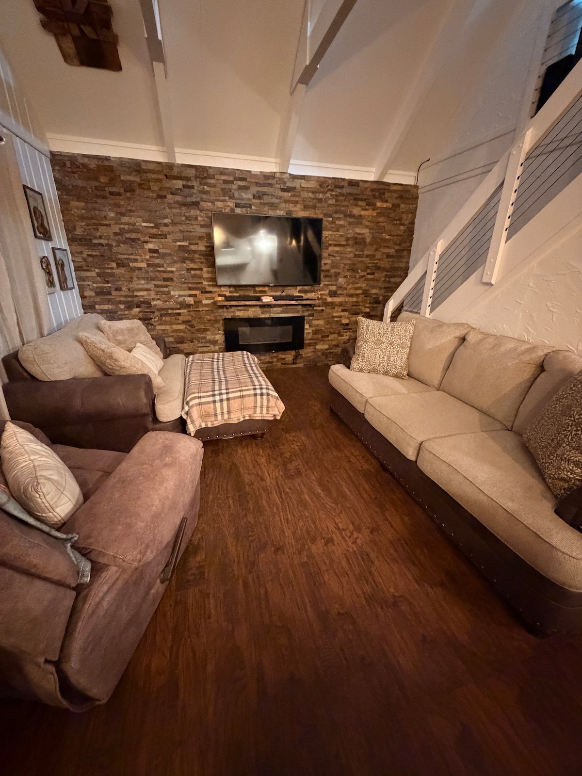 Experience this elegant & cozy condo.Offering a relaxing stay with a loft that sleeps 4 comfortably.Whether it's a day on the slopes, the golf course, or hiking relax and unwind in a peaceful and modern condo setting.Complete with WiFi, fireplace, massage chair, SmartTV, futon,full kitchen, toiletries and more.Common areas includes indoor/outdoor pool, hot tub, sauna, fitness, and tennis.Enjoy the Clubhouse Bar & Grill that is located near the condo for any snacks or delicious meals.Trivia night