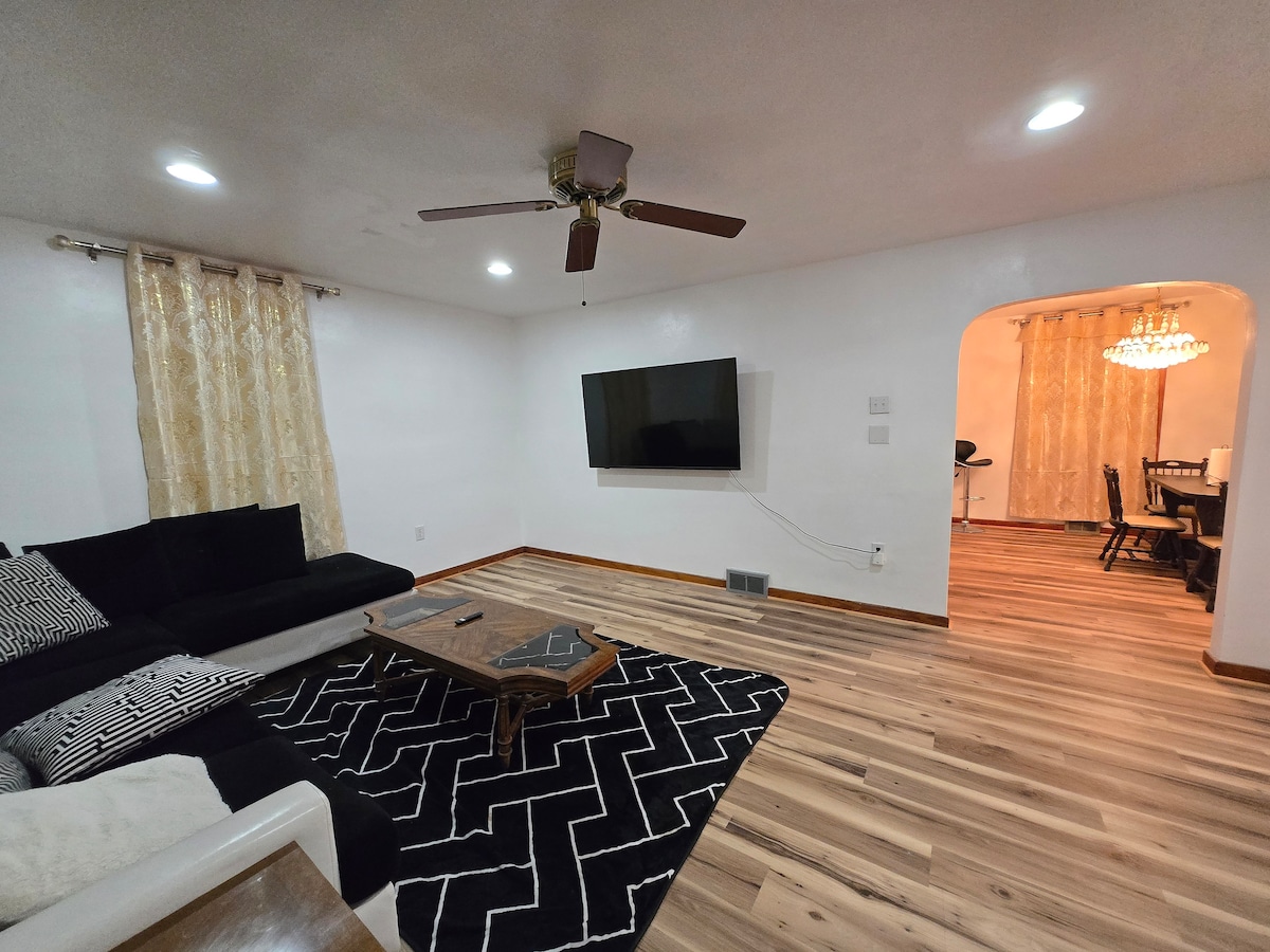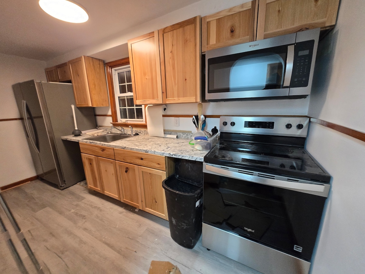 Newly renovated home in the heart of historic South Fork. 3 bedrooms (one is captured, but private) Large eat in kitchen with new black stainless appliances and a nice view of the town and railroad (RR enthusiasts take note). Large living room with a cozy brick fireplace (not for guest use) and TV. Local to both Johnstown and Altoona. Directly across from Dimond Funeral Home (convenient for out of area funeral attendees). Rear covered patio and large yard.