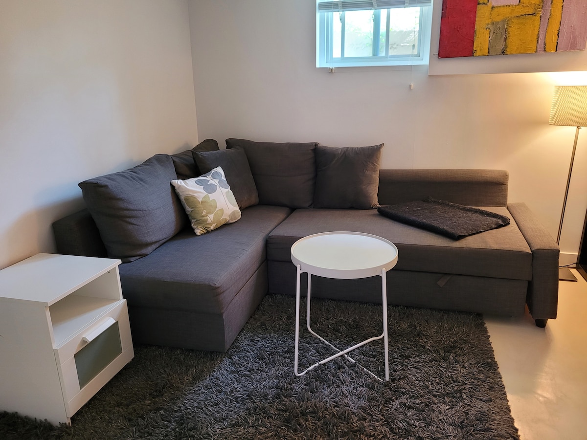 Welcome to our brand-new 1-bedroom basement unit, where comfort and cleanliness meet. Enjoy a spacious living room perfect for relaxation, and a cozy, well-equipped kitchen to prepare delightful meals. Every detail has been considered to ensure a comfortable and enjoyable stay. With modern amenities and a fresh ambiance, you'll feel right at home. Explore the nearby attractions and return to your private sanctuary for a peaceful retreat. Come experience the charm of our well-appointed space!