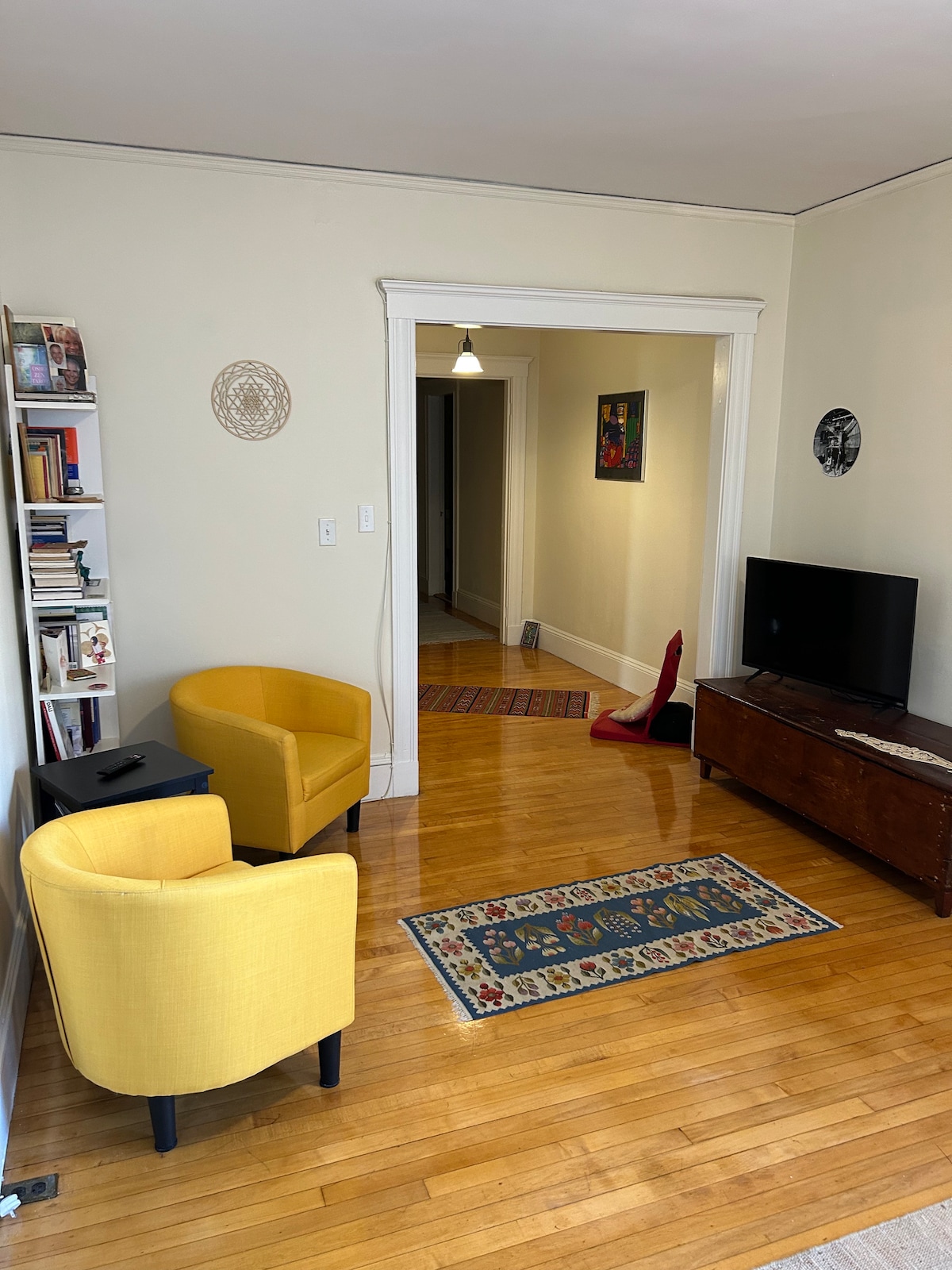 Charming studio on the garden level of a classic brick townhouse in Cambridge. Practically on campus: walk to Harvard yard (5 min) or MIT (15 min). Has a back porch for reading or enjoying fresh air. Well appointed with its own private bathroom w/tub, smart TV, and areas for seating, dining/studying, and a kitchenette with mini fridge, oven, microwave, toaster, espresso machine, and everything you might need for an enjoyable stay.