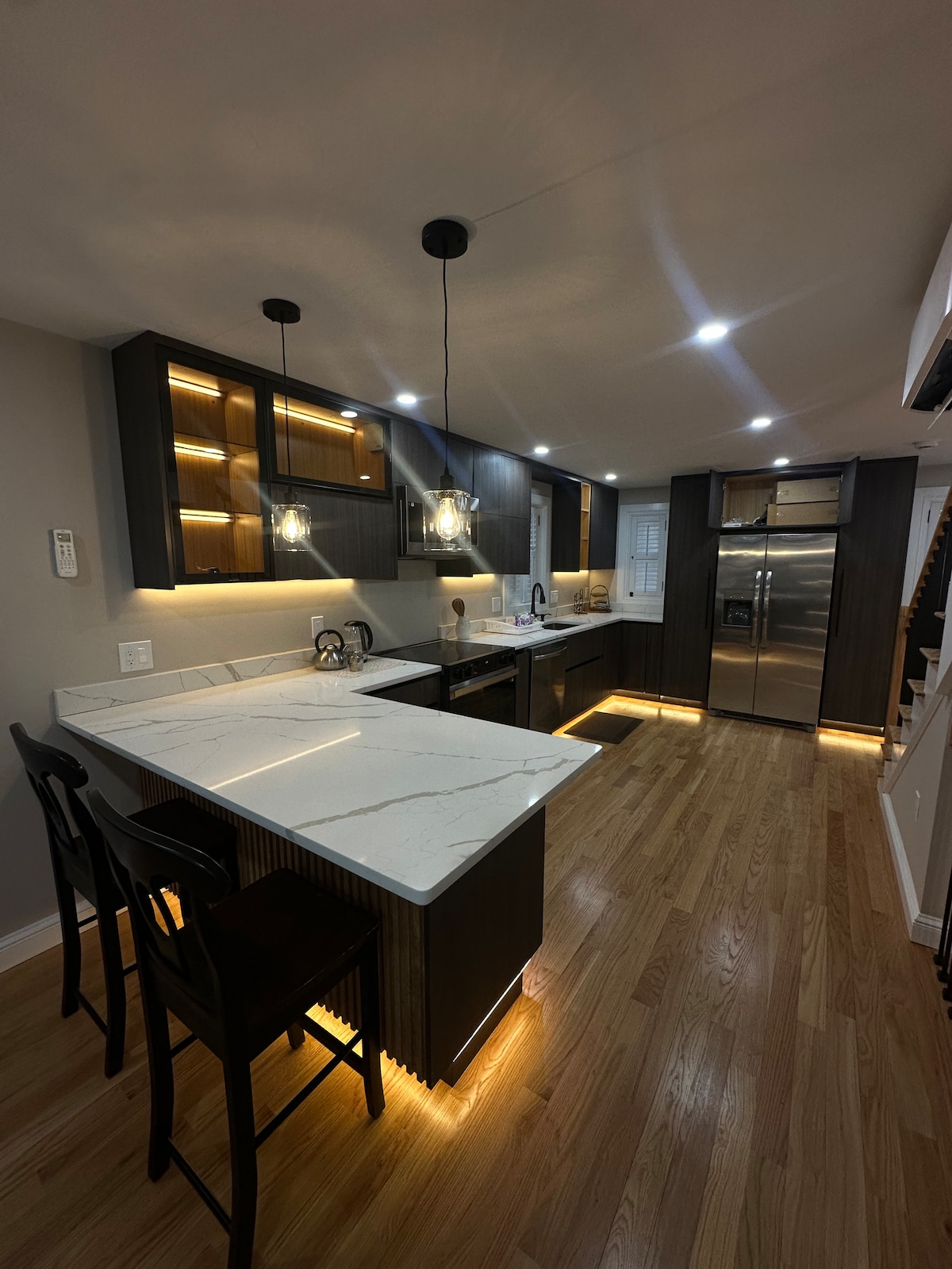 Waterfront! Gorgeous remodeled apartment with 3 bedrooms/2 bathrooms. Two complete floors. Downtown, dining options, historic sites & commuter rail to Boston are all conveniently close by.This unit is complete with linens, towels, utensils & laundry. Simply prepare your belongings and have fun while visiting. Parking is available off-street in a garage that is close to the apartment. Longer stays are encouraged, and longer stays may qualify for discounts. close to Downtown's historic district.