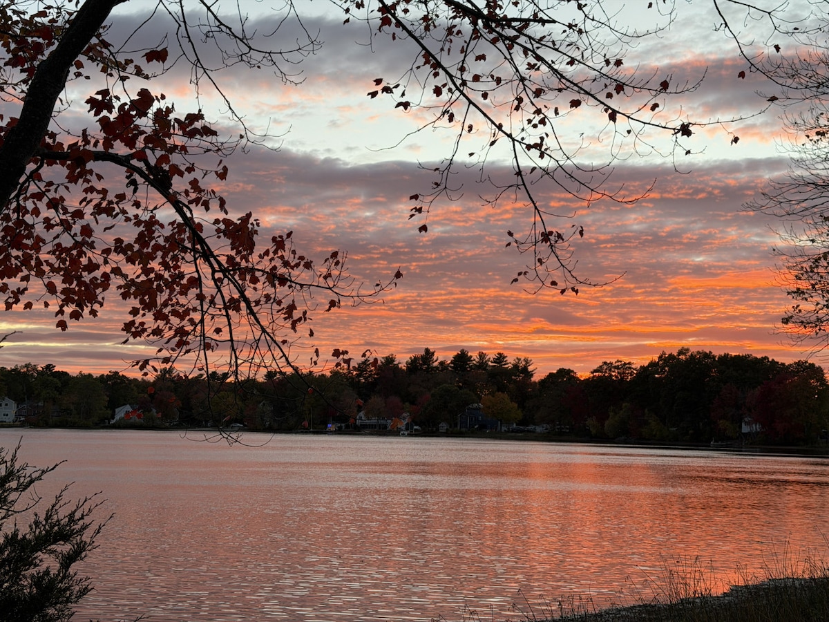 Waterfront 3BR home 1 mile from commuter rail to Boston. 1 mile from Blue hills ski. 2.2 miles from New England's 1st and only TopGolf. This 3BR, 2.5 BA features an open floor plan w/ view of your private lake from the kitchen and dining rooms. Head downstairs to play pool, ping pong or darts. Or relax by the fire and watch tv (all streaming channels). Warmer months turns into a resort: Fishing, boating, swimming, grill, fire pit, furnished cabanas, hiking the blue hills and much much more.