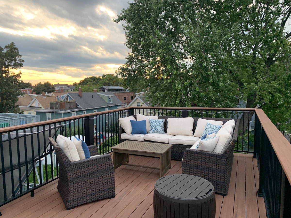- Escape on our Private Rooftop deck - Parking! - Just a short walk away from new Gilman sq. T stop- .3 mile 8 min walk. - Minutes drive to downtown Boston - Located just a few blocks outside of Union Square, Somerville. 5 mile/ 10 min walk to new Union Square T -5min drive - 7min bike ride to Harvard University, close to MIT or Tufts University. 25min walk to Harvard. -1 gig high speed WiFi -Kitchenette with Fridge, Keurig + drip coffee makers, Toaster, Microwave & sink for light meals.