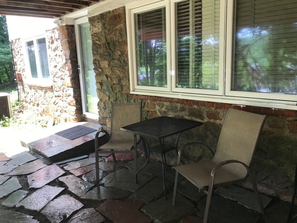 Charming studio on the garden level of a classic brick townhouse in Cambridge. Practically on campus: walk to Harvard yard (5 min) or MIT (15 min). Has a back porch for reading or enjoying fresh air. Well appointed with its own private bathroom w/tub, smart TV, and areas for seating, dining/studying, and a kitchenette with mini fridge, oven, microwave, toaster, espresso machine, and everything you might need for an enjoyable stay.
