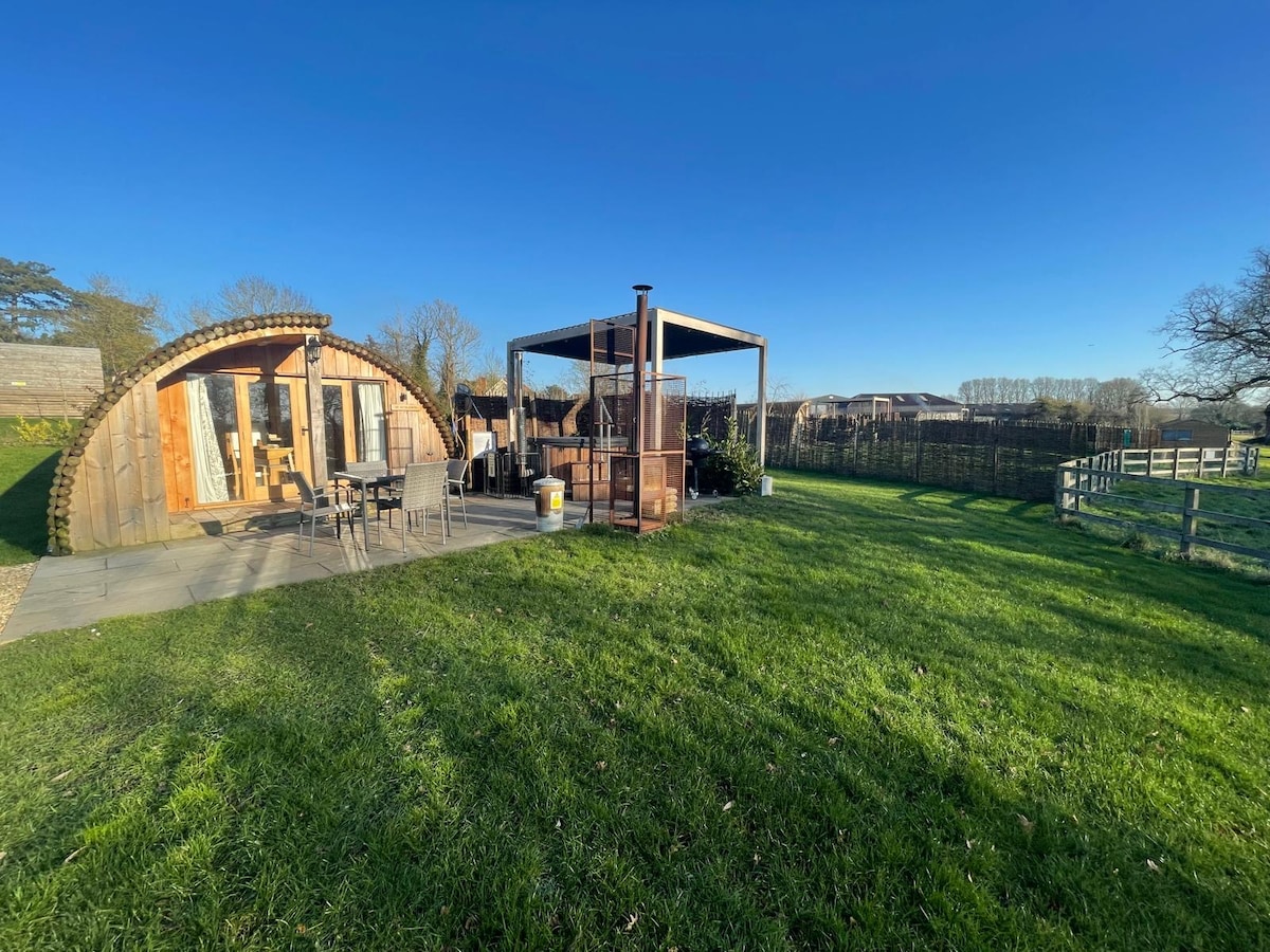 Cosy self contained lodge nestled in a secluded paddock in a quiet part of the Village. Over looking open fields, surrounded by lovely walks adjoining the village cricket green. Enjoy open plan living consisting of a king size bed, comfy sofa bed, dining area with a kitchen with cooker, microwave, fridge/freezer, Tassimo coffee machine. The lodge has a shower, toilet and heated towel rail. Bedding and towels supplied. Enjoy the delights of the GeoDome, great for watching the sun set.