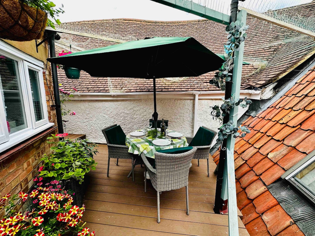 Ideal for business or leisure travellers. Peaceful & well-furnished, walking distance to the station (London 50 min) and the historic City centre. Fully stocked kitchen, shower room with basin and WC, dining table / workstation upstairs in the large bedroom / sitting room area (5x4m). Fast Wifi. Private access through side gate to street. There is a small courtyard garden between our house and the property. You're welcome to use our garden to sit out if you would like.