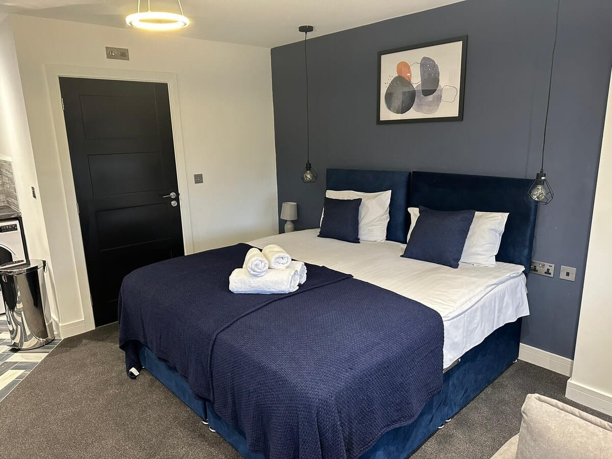 ✨ Stay in this large, modern studio, perfect for up to 4 guests. Located just 5 minutes from Peterborough city centre, this stylish space includes a double bed and a sofa bed for extra guests. With fast WiFi, free parking, and a fully equipped kitchen, it’s the ideal spot for both work and relaxation. Perfect for couples, small groups, or business travellers looking for comfort and convenience! 🛏️🛋️💻