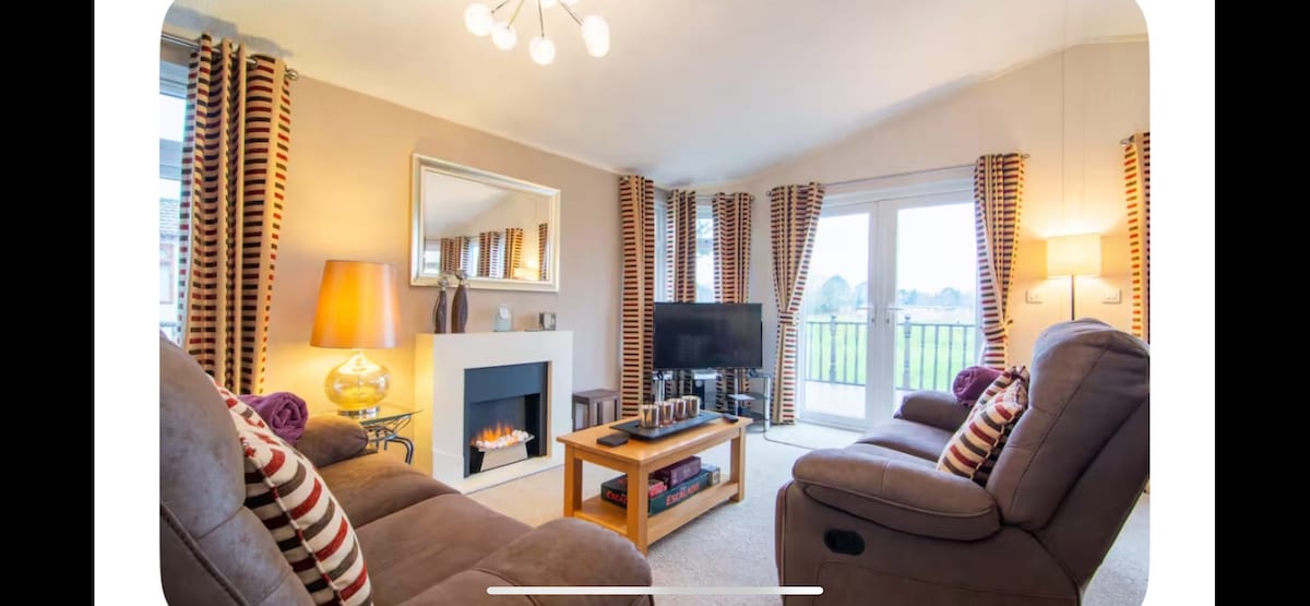 Fully equiped lodge, including bedding and towels,fully fitted kitchen with cooking equipment, washing machine,full central heating a real home from home. Included in your stay are the use of leisure facilities which includes luxury heated swimming pool, sauna & Steam room,fully equiped gym.please see price list for passes. Golf for an extra charge starting from £20. Close to Cambridgeshire/Lincolnshire borders and Norfolk coast line.